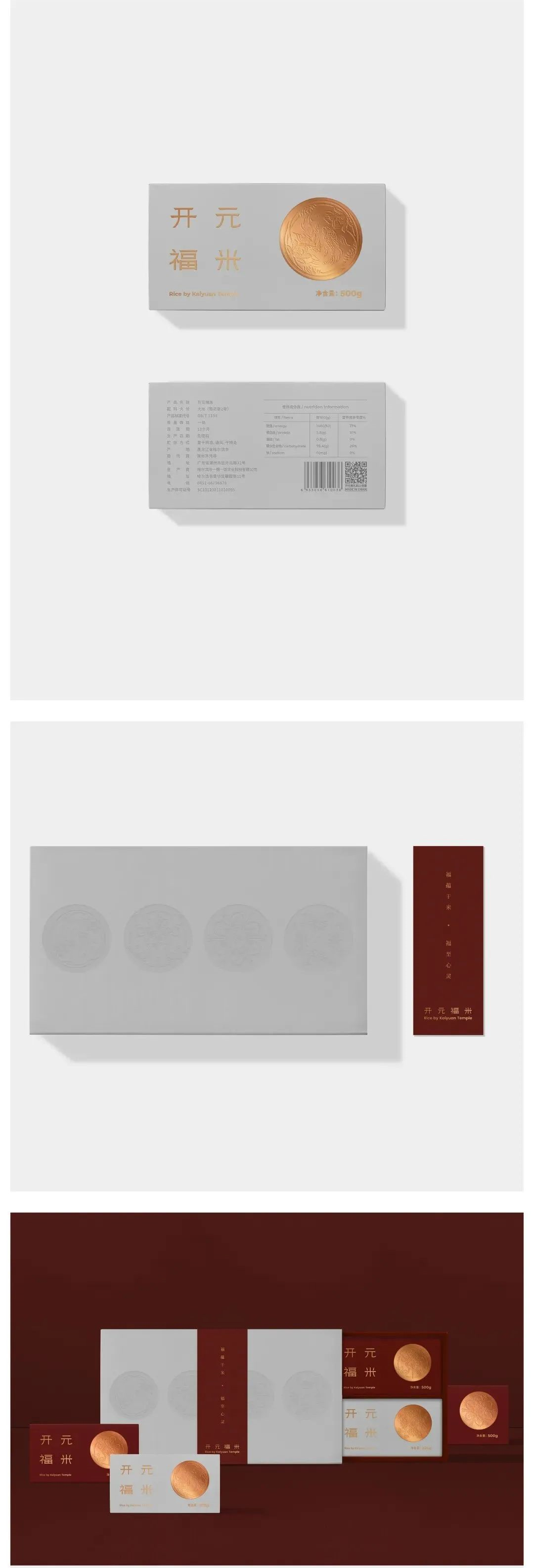 礼盒沿用“和合圆满”的文化概念,提炼佛教八宝中的“四宝”的造型特点并以新的形式赋予传统祥瑞图案新的生命力,集古韵与现代审美于一体,也成为好运、福气的传递之物。