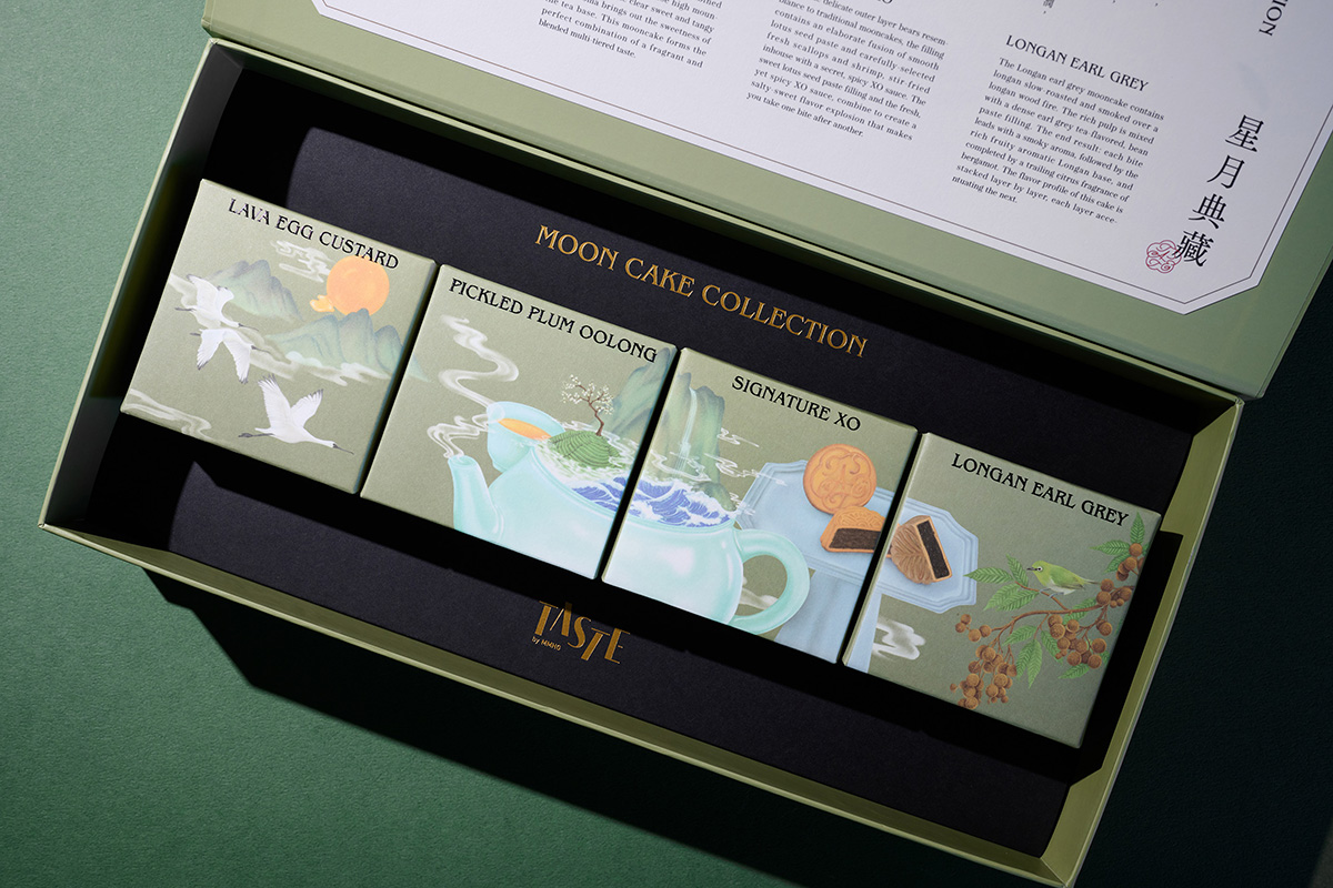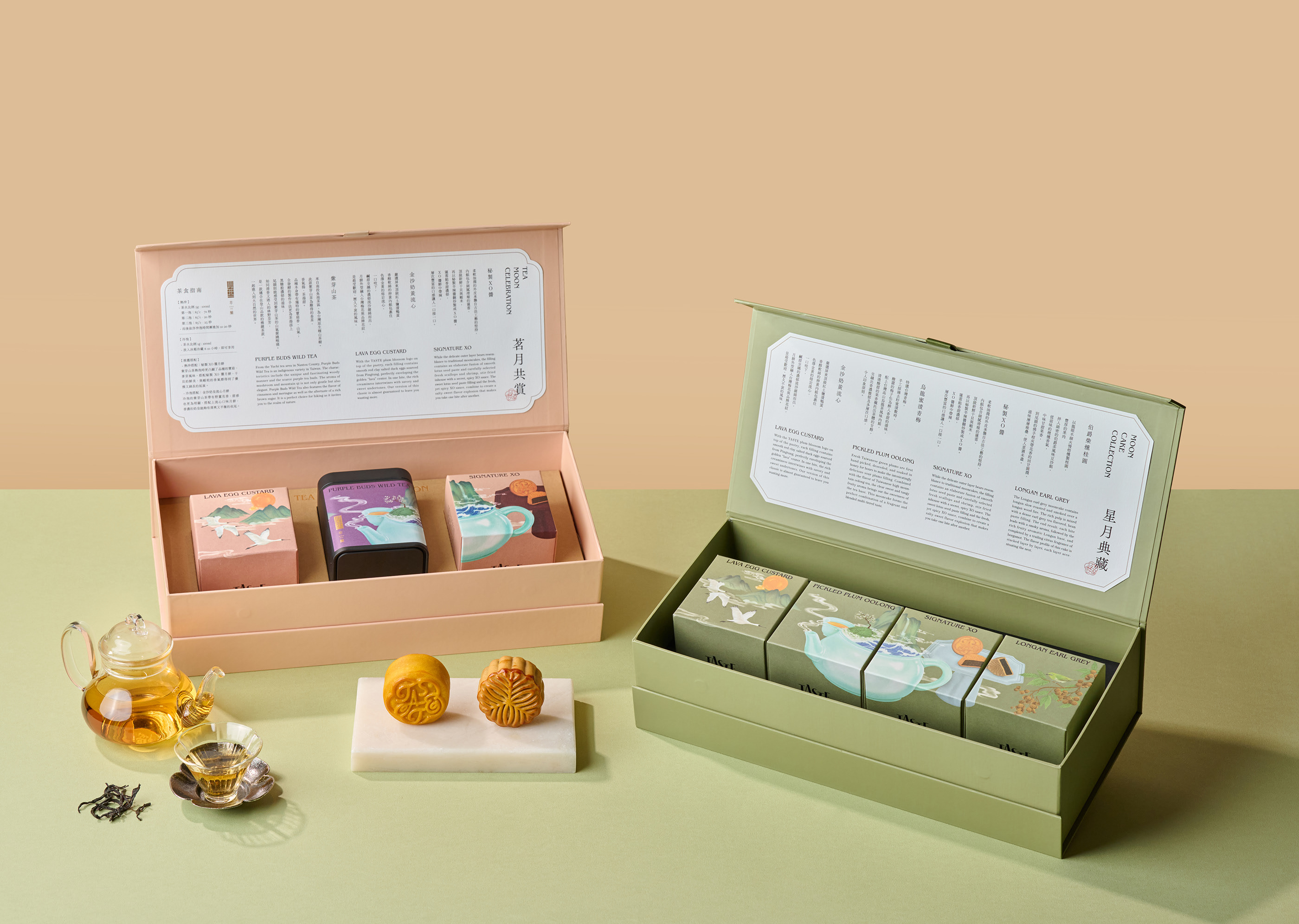 由主厨林泉richie_lin监制研发,保留了传统广式月饼的经典饼皮与风味,同时运用茶食佐茶与风味搭配学(Tea Pairing)将台湾独特茶香与在地水果融入礼盒,以新意象诠释传统风味,每口都能吃到经典及创新交叠出的精致美味。