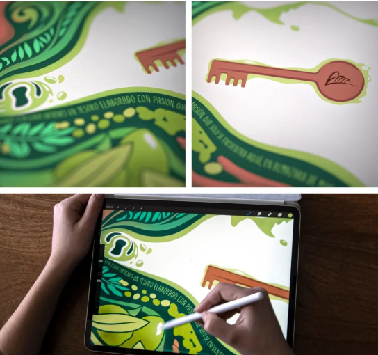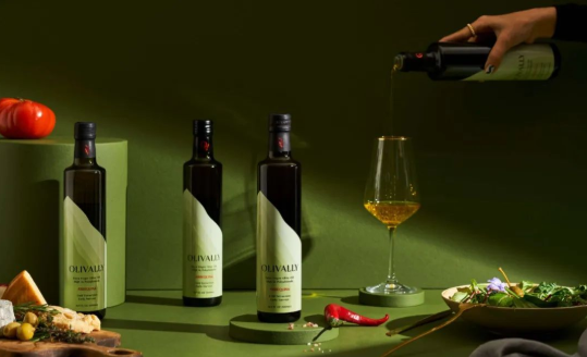 在背景中添加了手工采摘完美橄榄的插图,并以绘画风格制作了橄榄叶的手工插图,带来了干净和简约的美感。