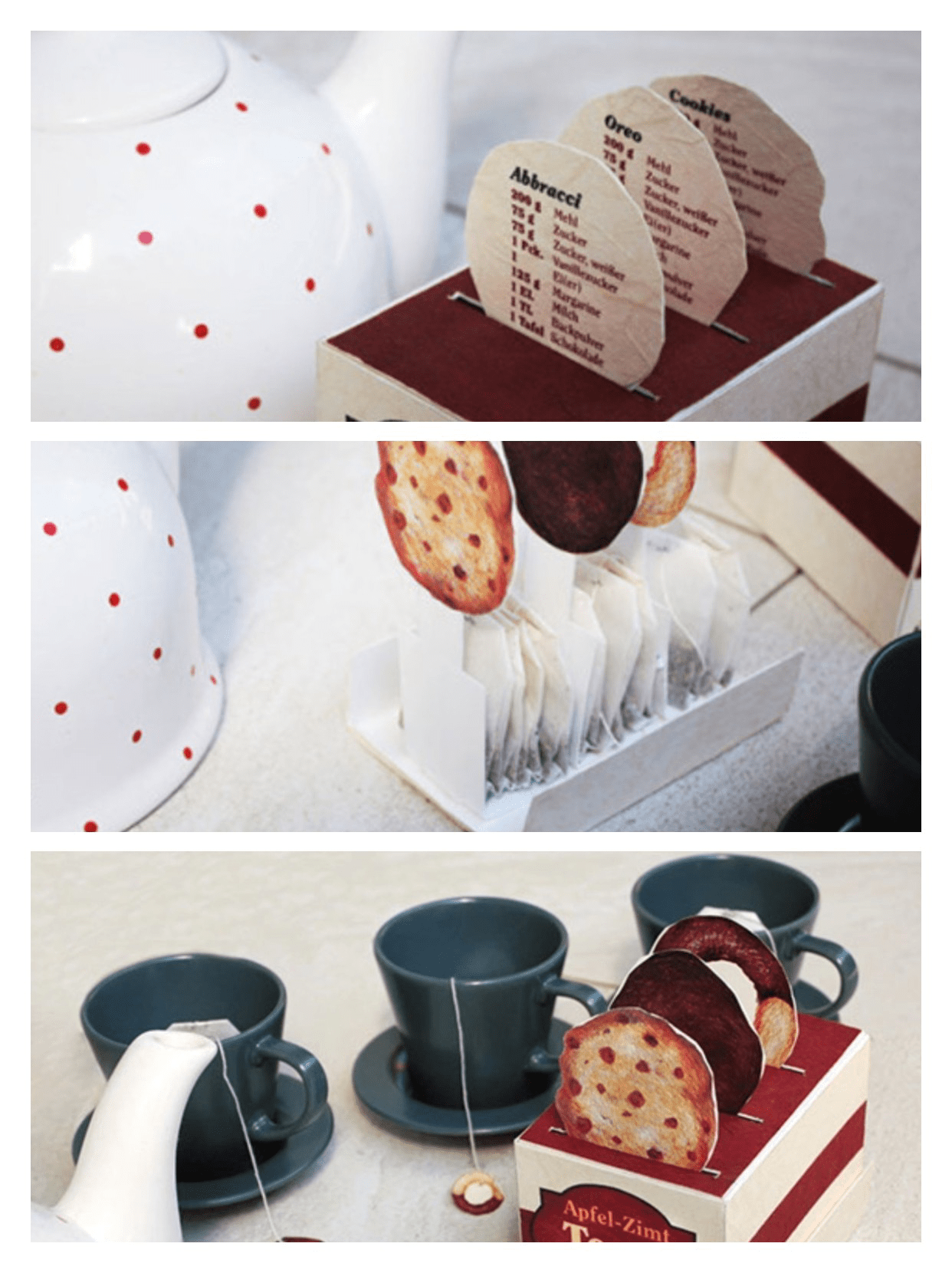 这款茶品牌又维也纳的18luck新利全站 师Dina Bukva 创作而出,Dina Bukva因为酷爱吃巧克力曲奇,于是把自己的喜好放入茶叶包装,不同的茶包搭配不同口味的曲奇饼干,极具创意。