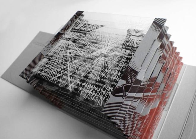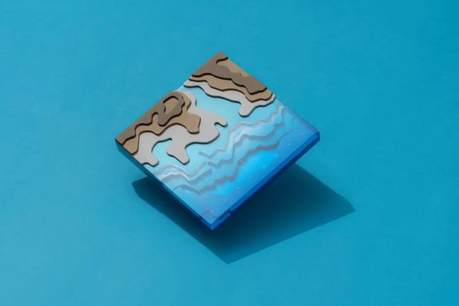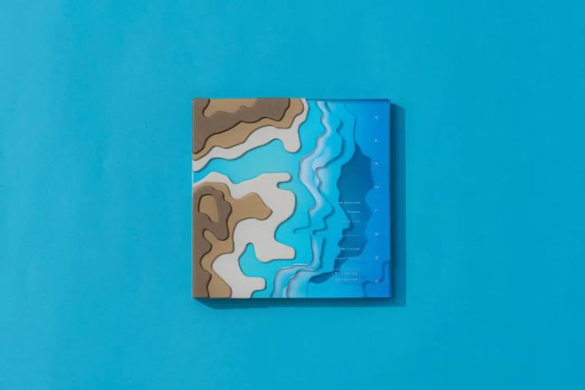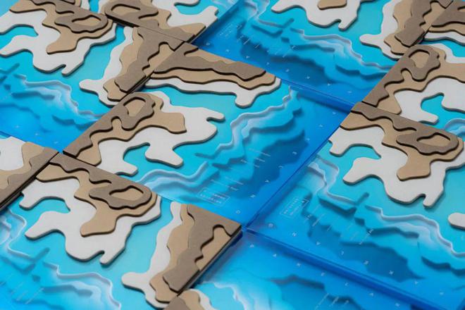 上通过纸张的堆叠和透明UV印刷工艺,表现台湾东部海岸、山脉与人的样貌。