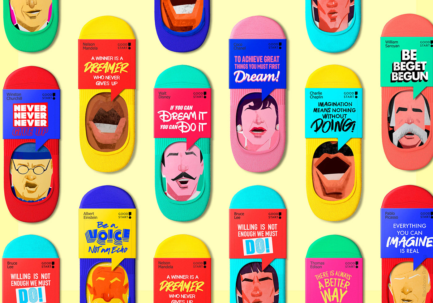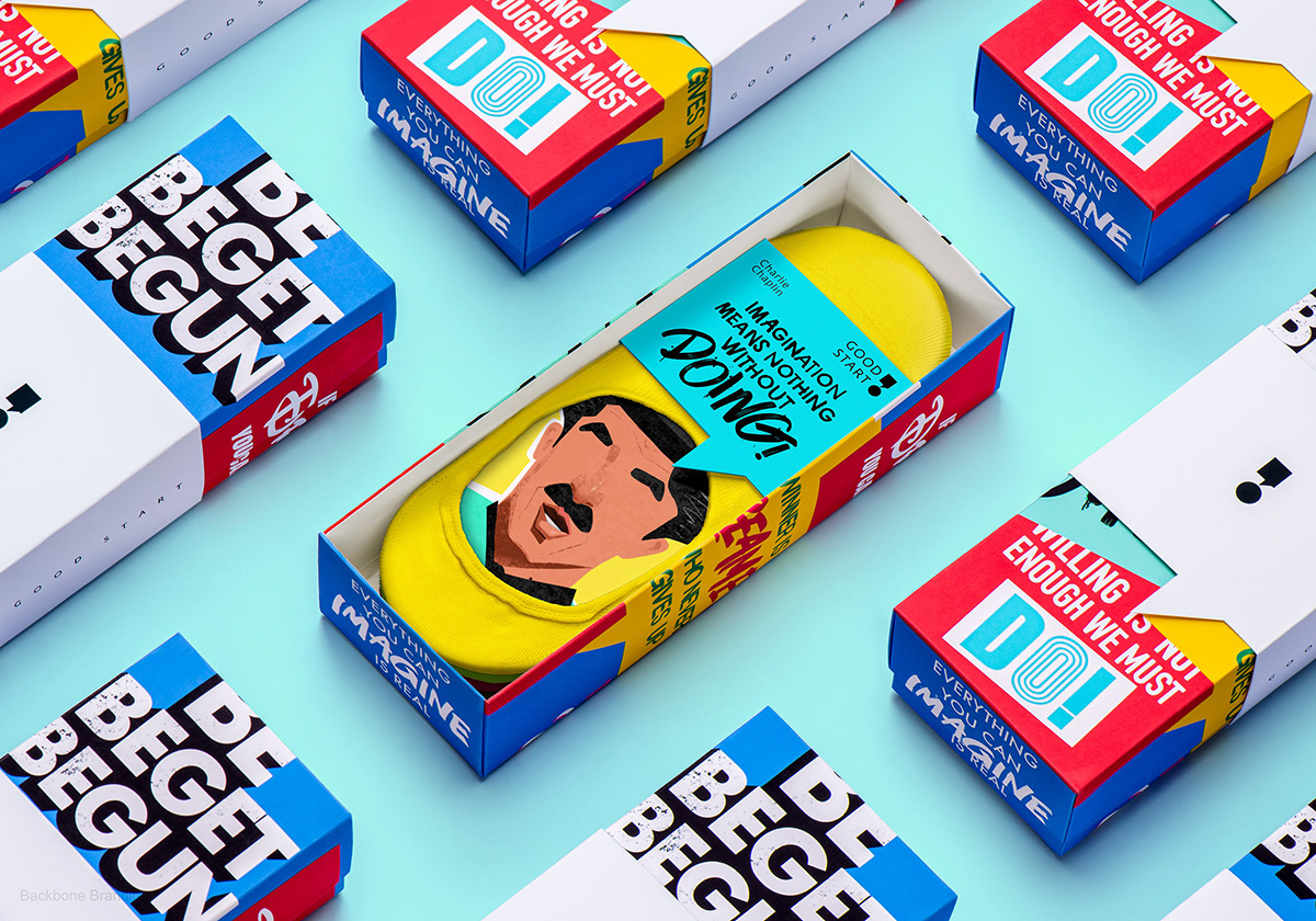 一周中的每一天都有七支 Good Start 袜子。 穿上印有著名艺术家或科学家的信息的袜子,您的一天一定会有美好的开始,这些信息将激励您行动、创造和永不放弃。