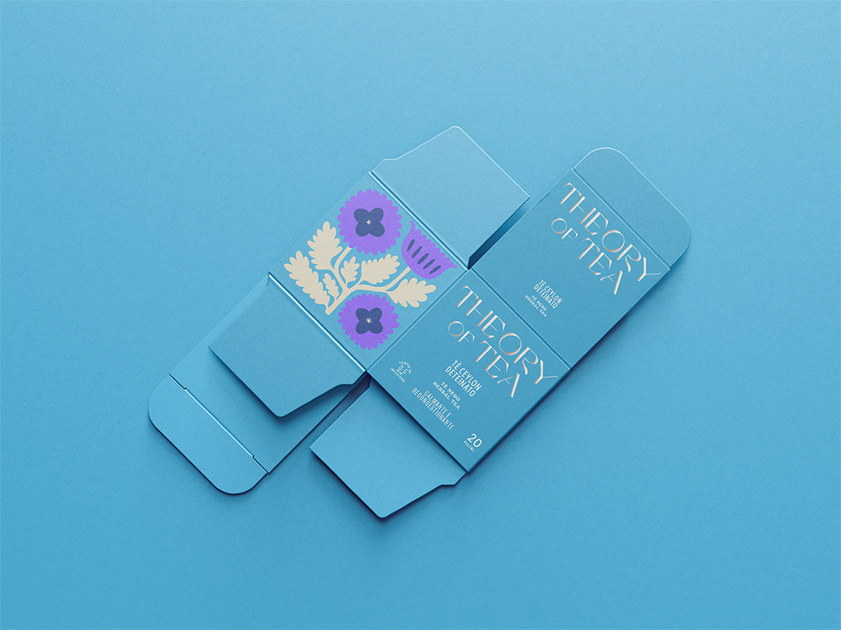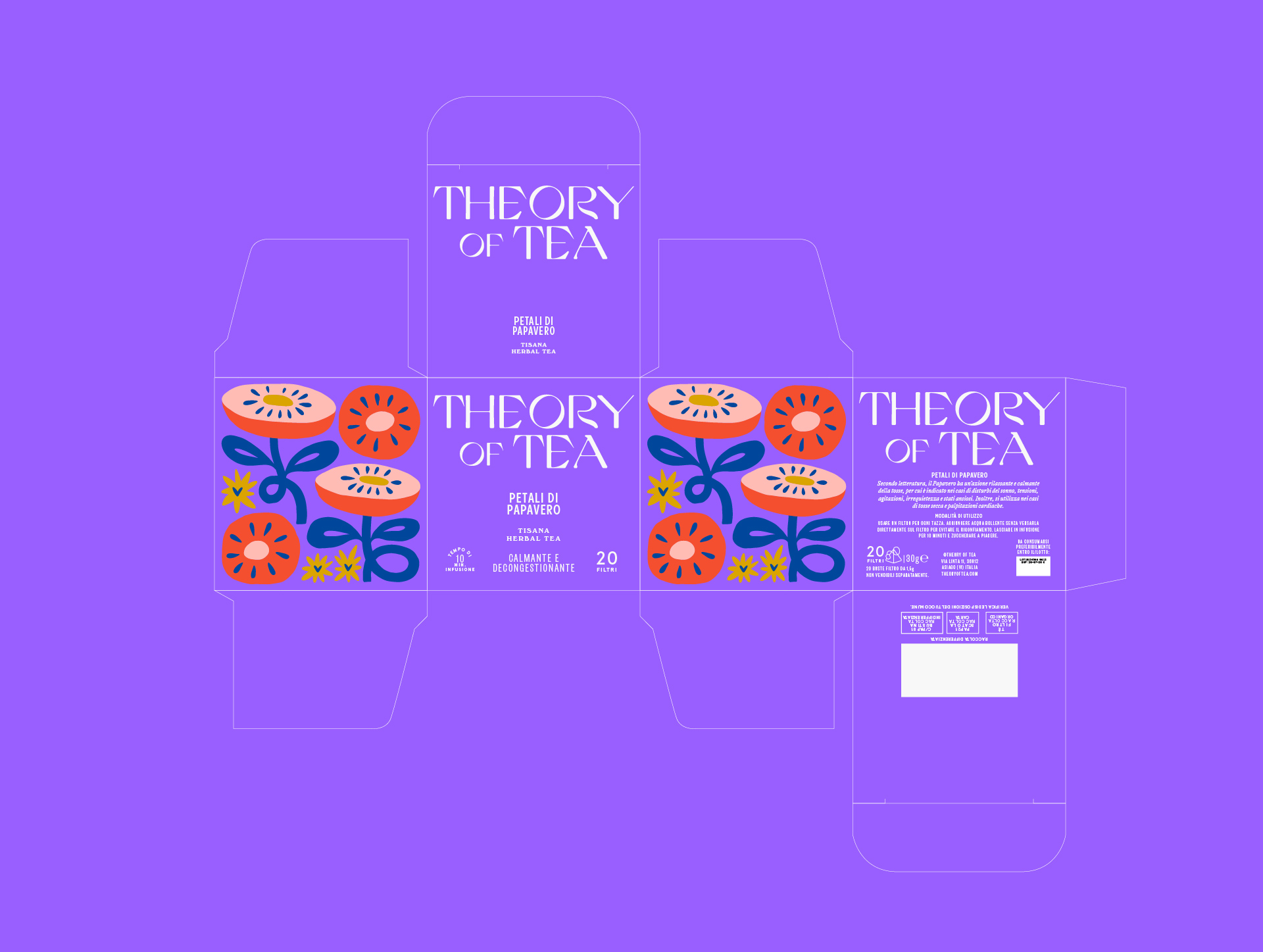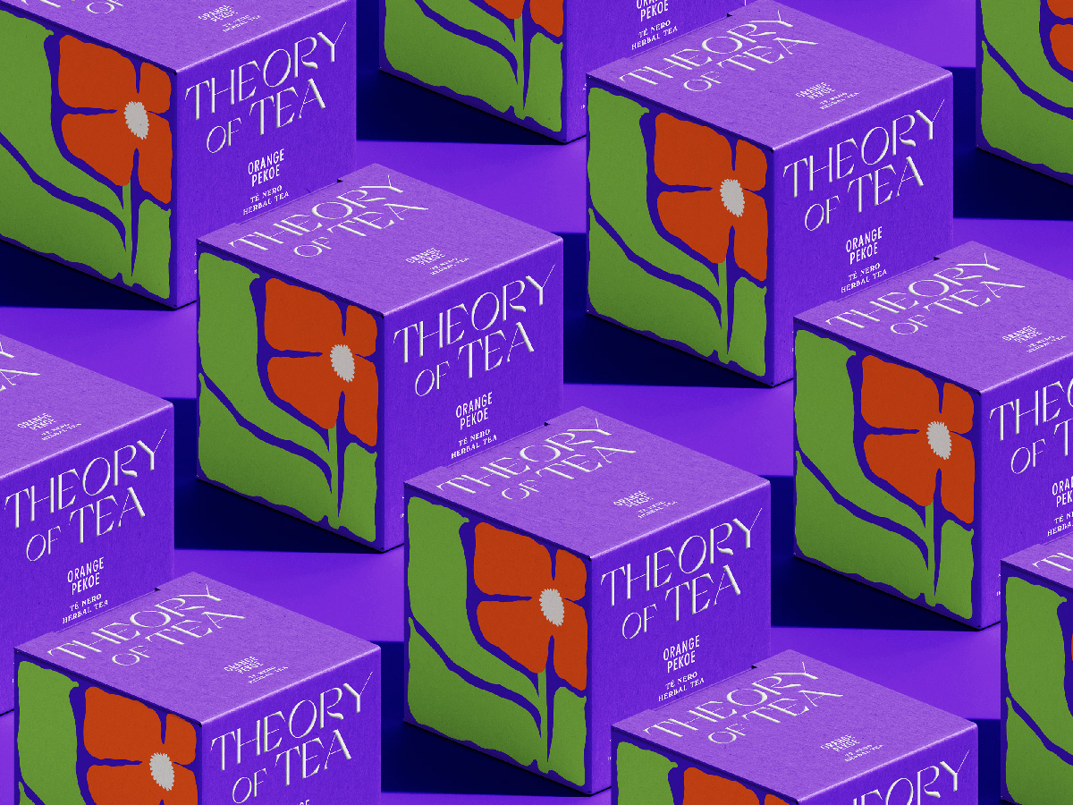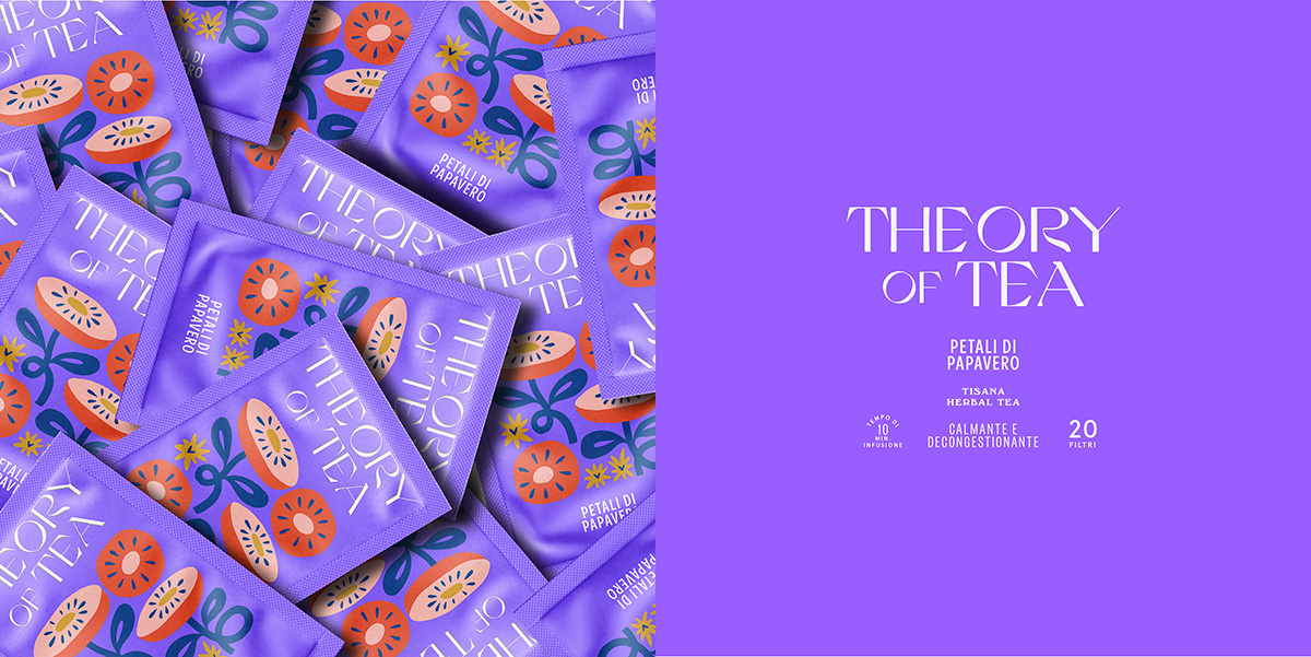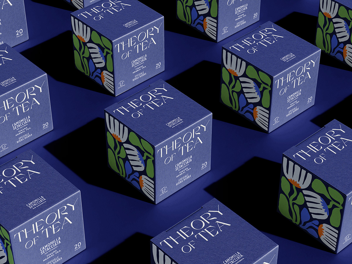 Theory of tea 是一个高端茶品牌,专为那些喜欢品茶的人打造。字体灵感来自茶山,蜿蜒、圆润、饱满、浓郁。茶叶包装在可持续和可回收的纸板盒中,装茶滤的袋子也是用纸制成的。插图是个性化的,每个花卉图案都是手绘的,以赋予每种混合茶更多的个性。