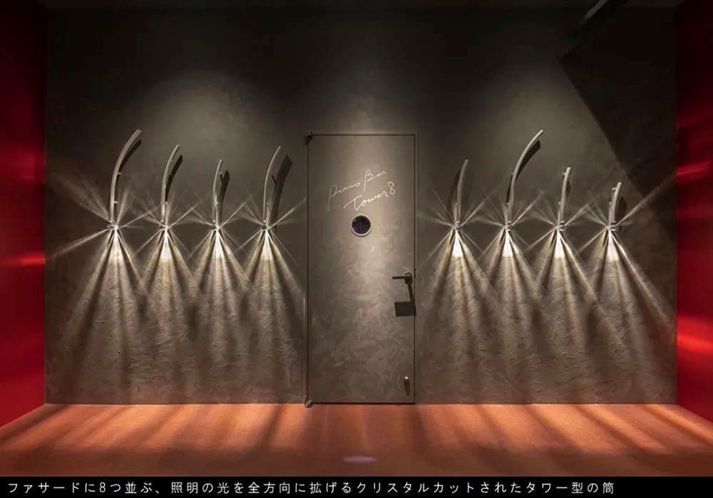 Tower8是基于 "八盏灯 "的概念:外墙上的八个水晶切割的塔形透明管,将正上方的光线传播到各个方向,从远处看是一个醒目的标志。当你看向它们时,你也会得到一个 "万花筒",店内的气氛从外面反射到管子上,从店内看,它们像舞台上的钢琴旁边的八颗宝石一样闪闪发光。这是一个标识,也是灯和万花筒。