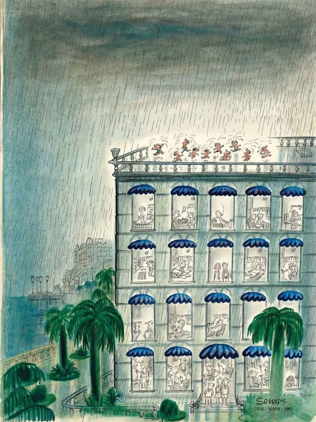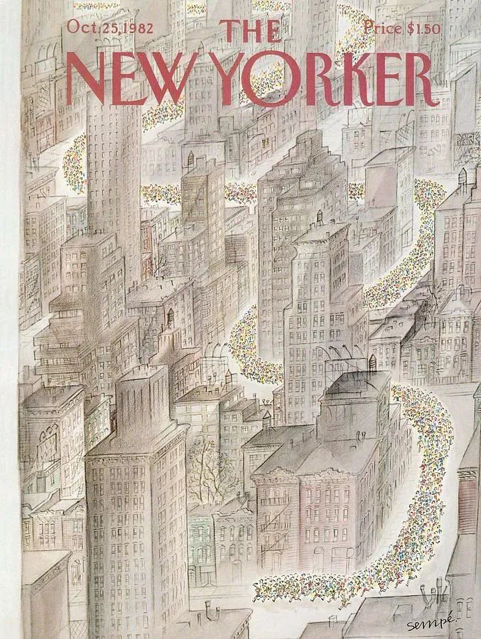 1978年,46岁让-雅克·桑贝第一次为《纽约客》画封面。40多年来,桑贝画了120多幅封面,成为《纽约客》创作最多封面插画的艺术家。