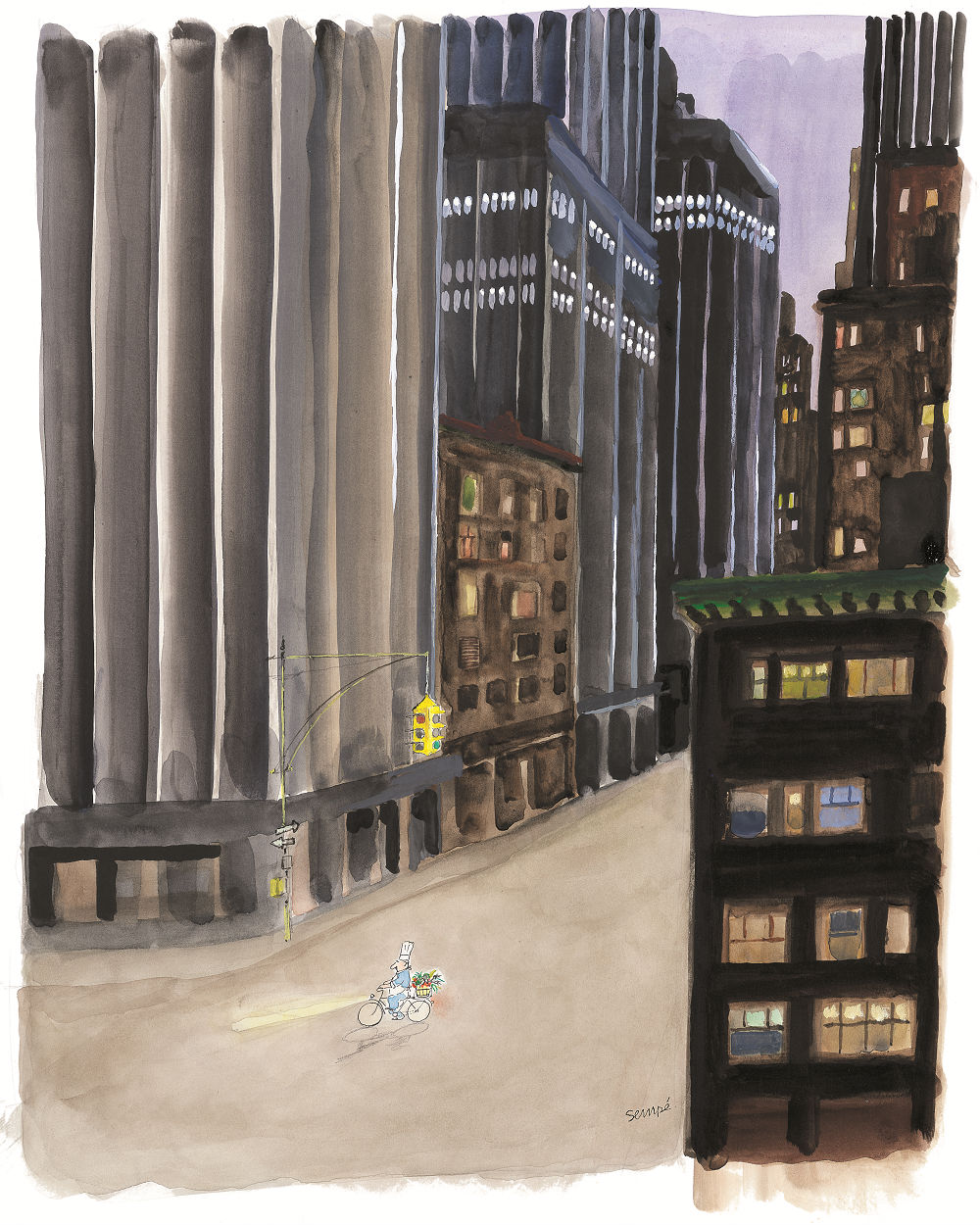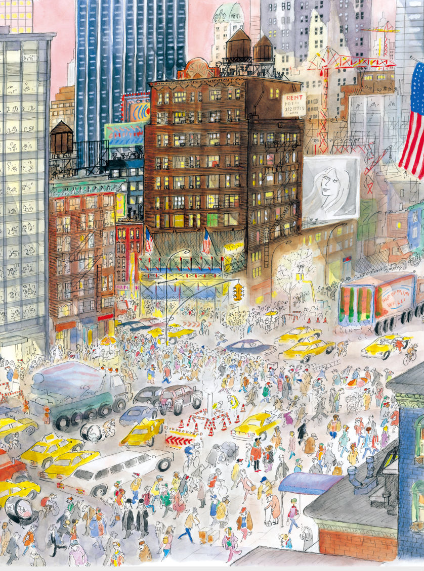 大概是这样的阅历,让他更能发掘出日常的情味。我最喜欢的是他为《纽约客》创作的封面,在喧嚣拥挤、高楼林立的都市中,他总能画出让人内心柔软的画面。