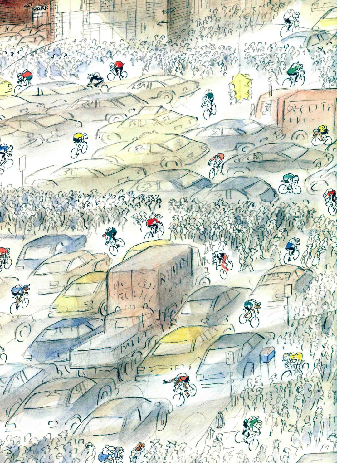 桑贝说:“我喜欢画街景,这好像意味着我不得不画汽车,但是很奇怪,我其实很讨厌画现代的这些汽车。”