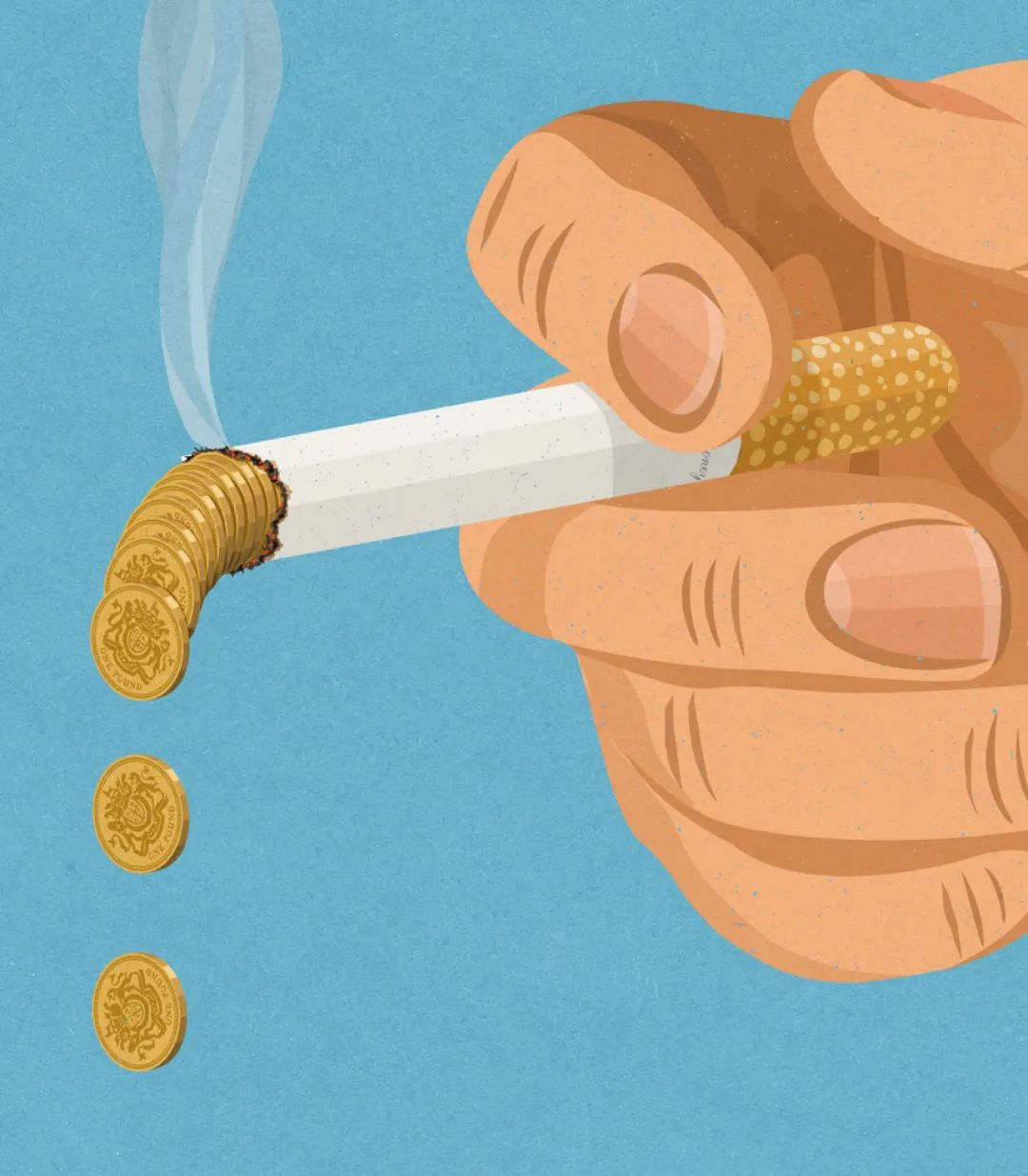 诸如“抽烟有害健康”这个已经快成为废话的常识,一再重复已经很难再引起大家的注意和改变。但当你换一个切入点,把掉落的烟灰换成不断流失的钱财,反而能立起一种崭新的警醒。