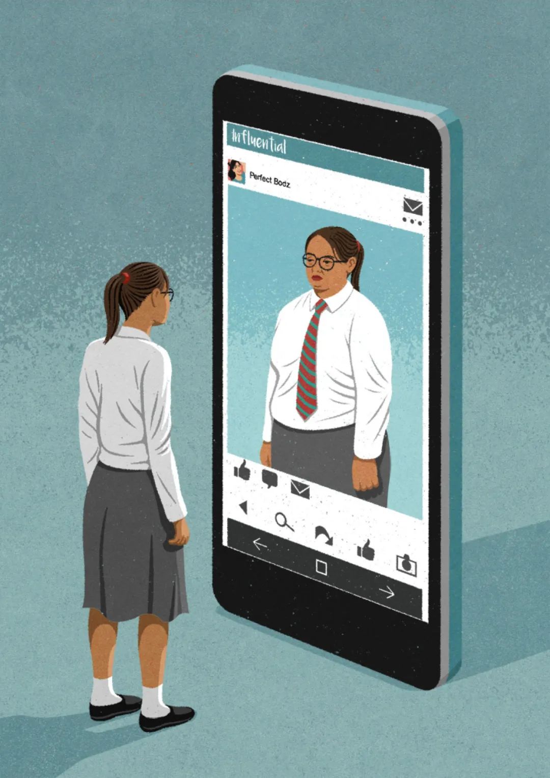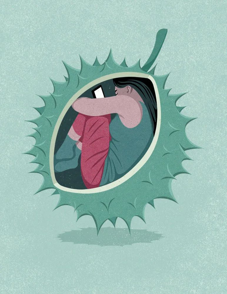 再比如,「沉迷电子设备从娃娃抓起」这一点,相信很多人已经意识到不对劲了。插画家选择把危害显形化,变成从手机里长出来的张牙舞爪的怪物,威慑力不言而喻。