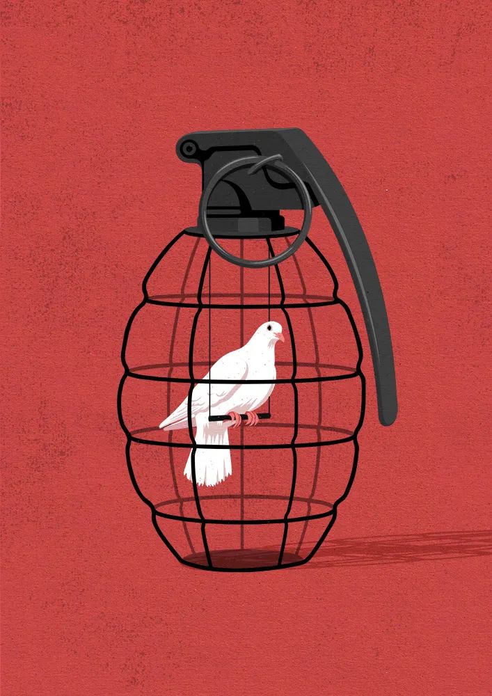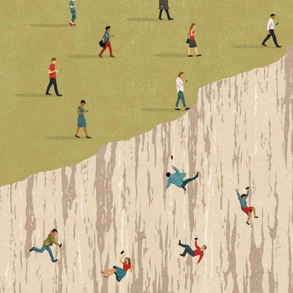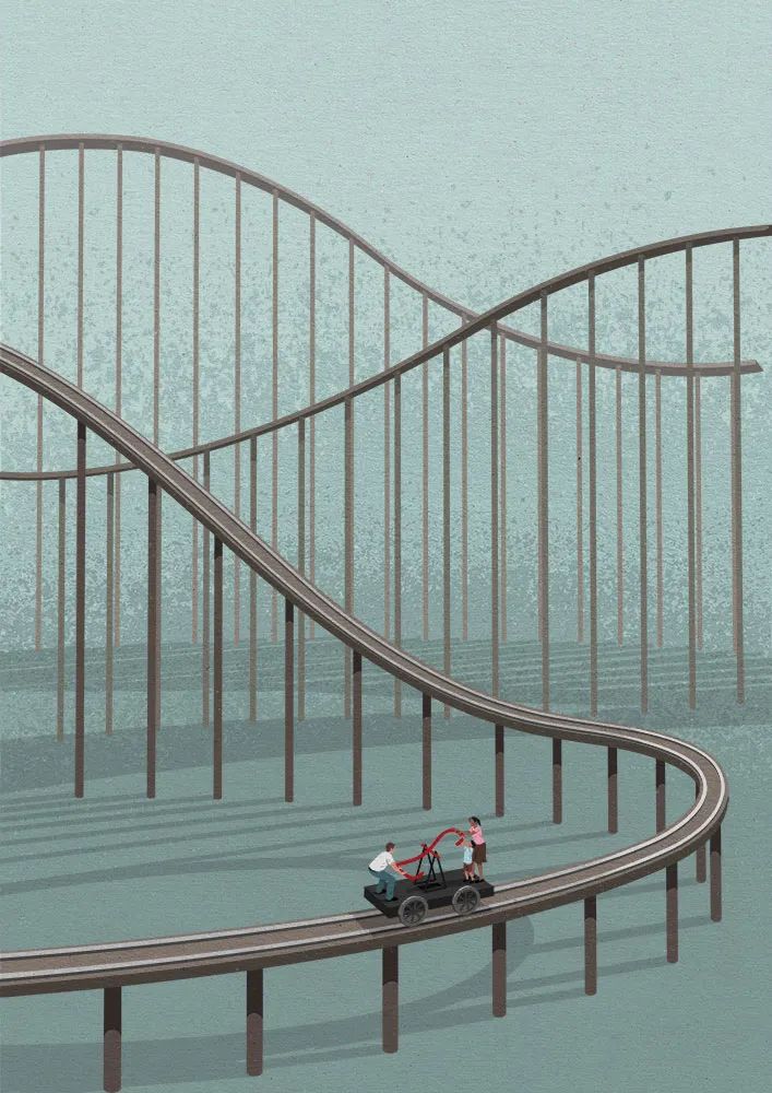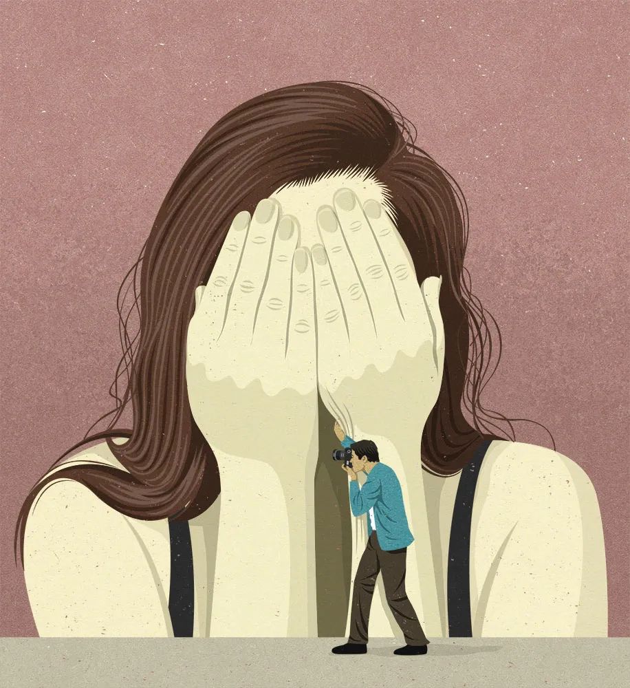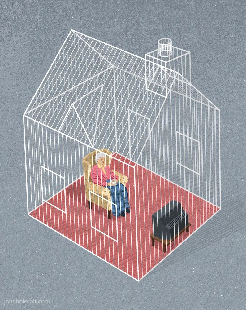 类似的暗喻手法,在John Holcroft的插画中相当常见。他会在创作中实时映射社会现象,点出80%,剩下的20%留给观者自行咂摸和感受。若是悟出其中的暗讽,会有一种耳目一新的痛快感袭来。