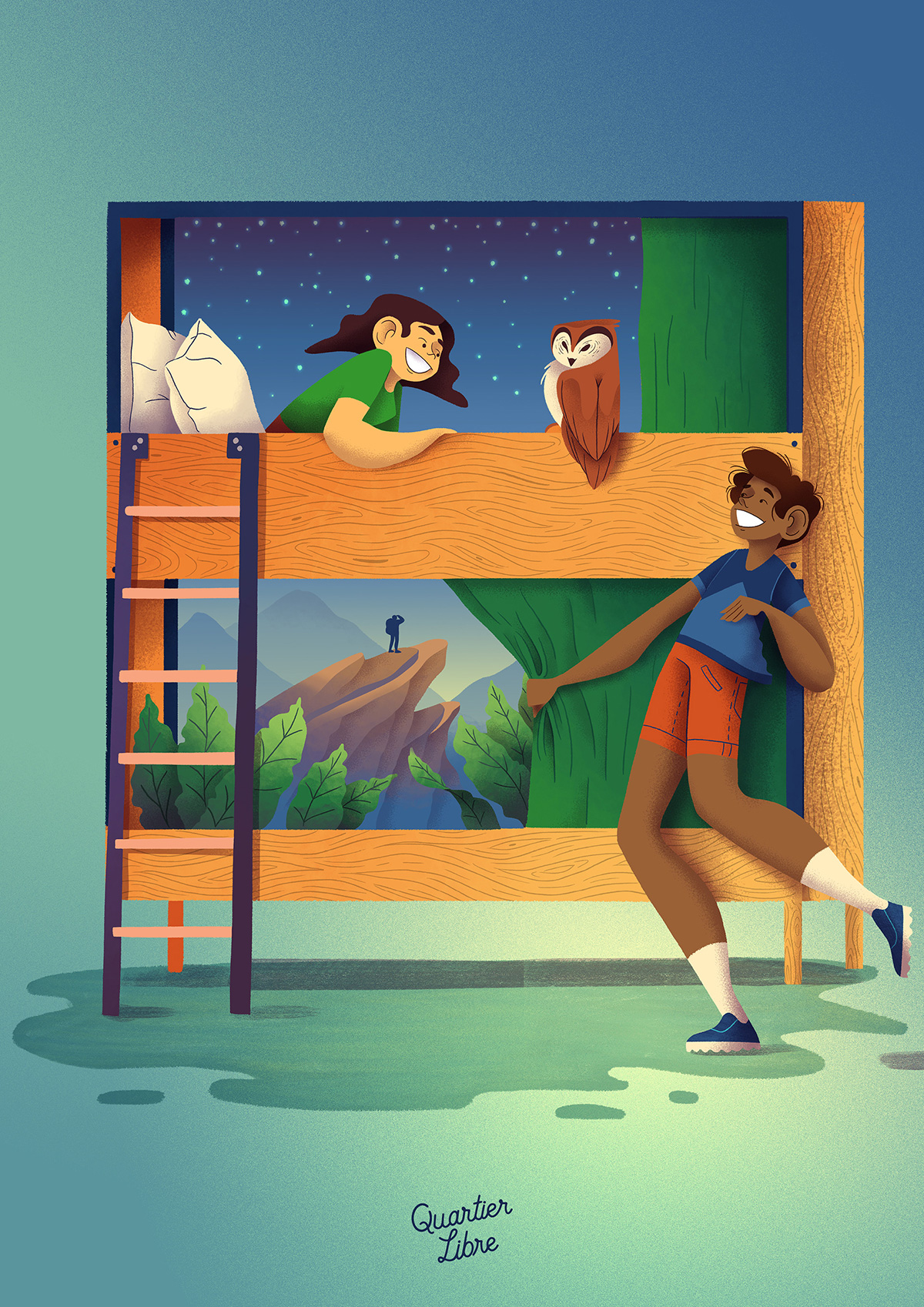 旅舍Quartier Libre邀请您在悬崖和森林之间的泡泡中逃生。您将能够享受各种活动、优质的当地产品和当之无愧的睡眠之夜。