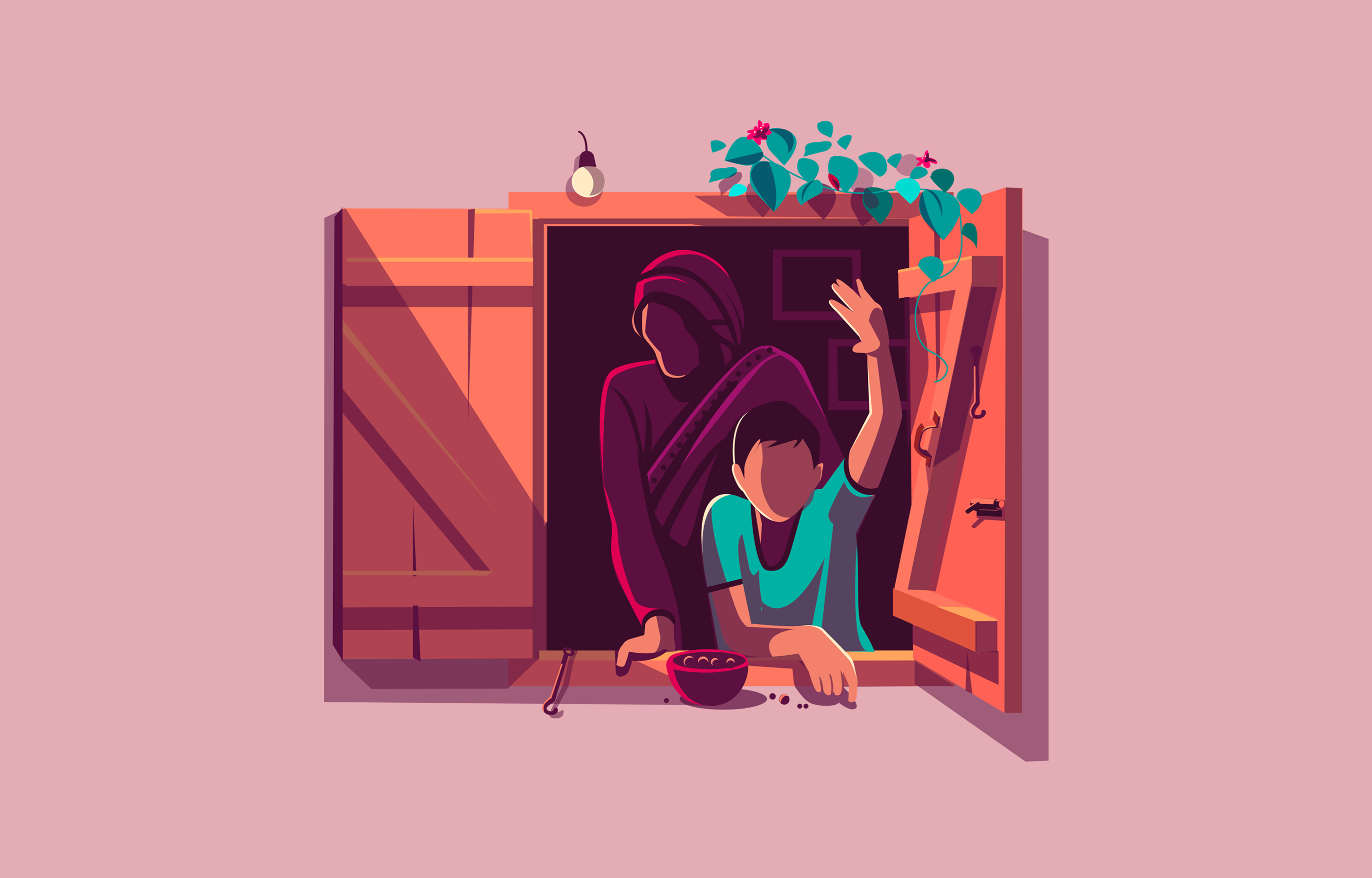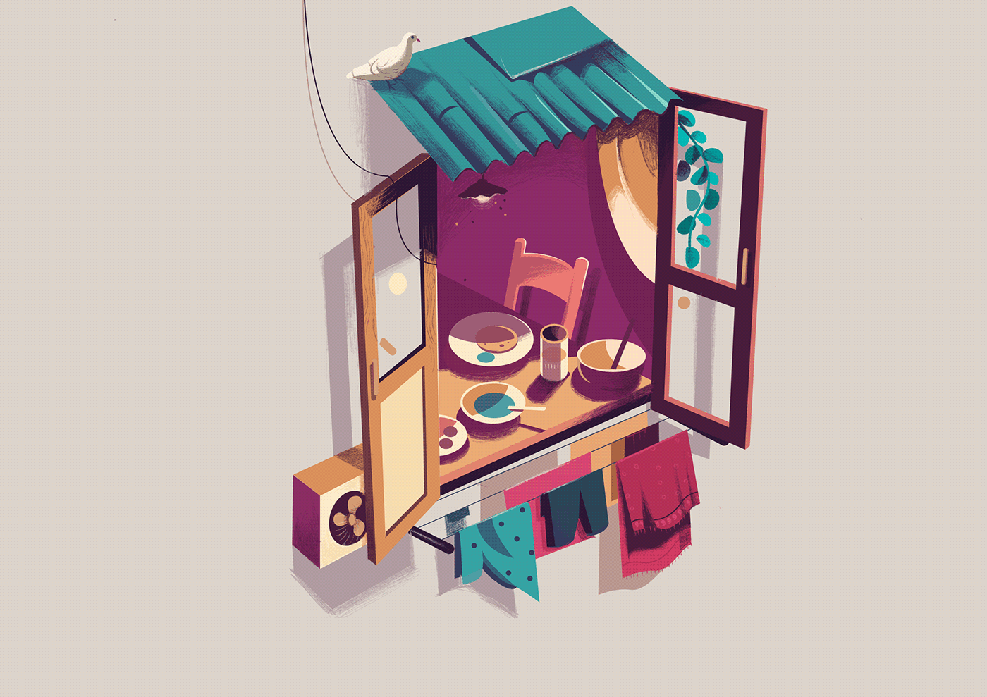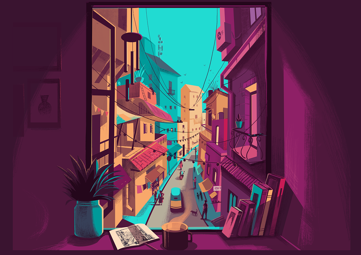 窗户后的人生百态:印度插画师ranganath krishnamani插画作品