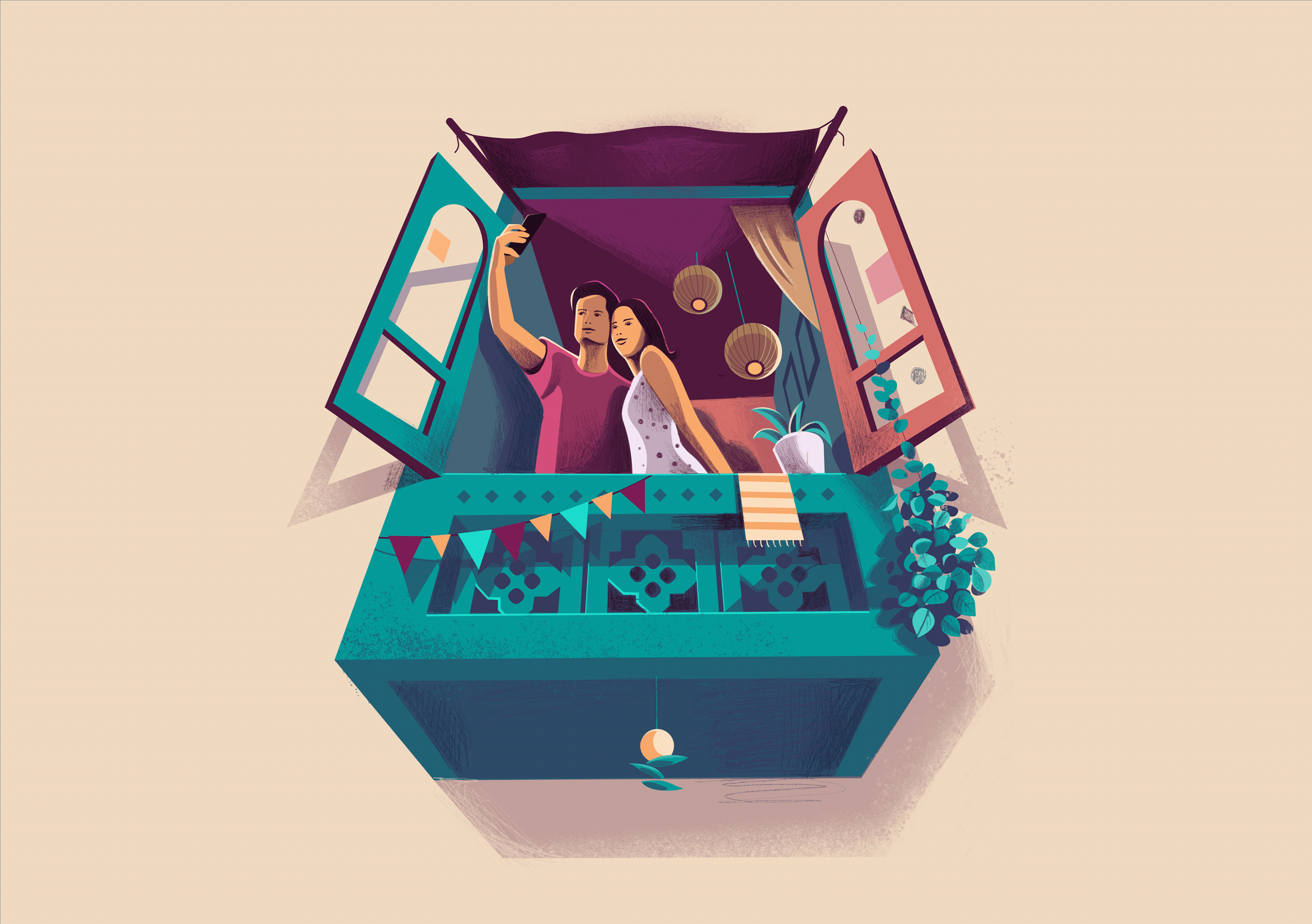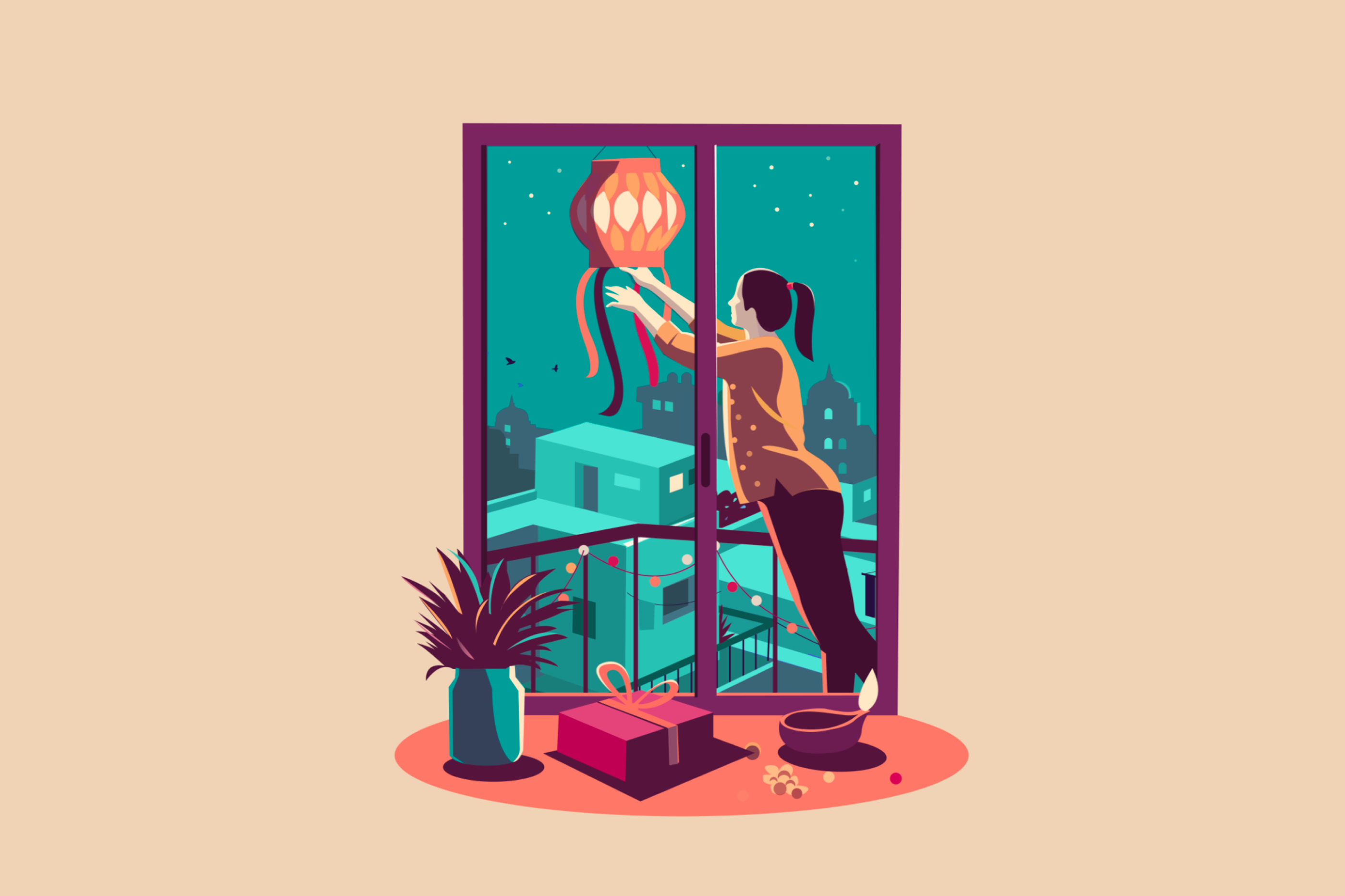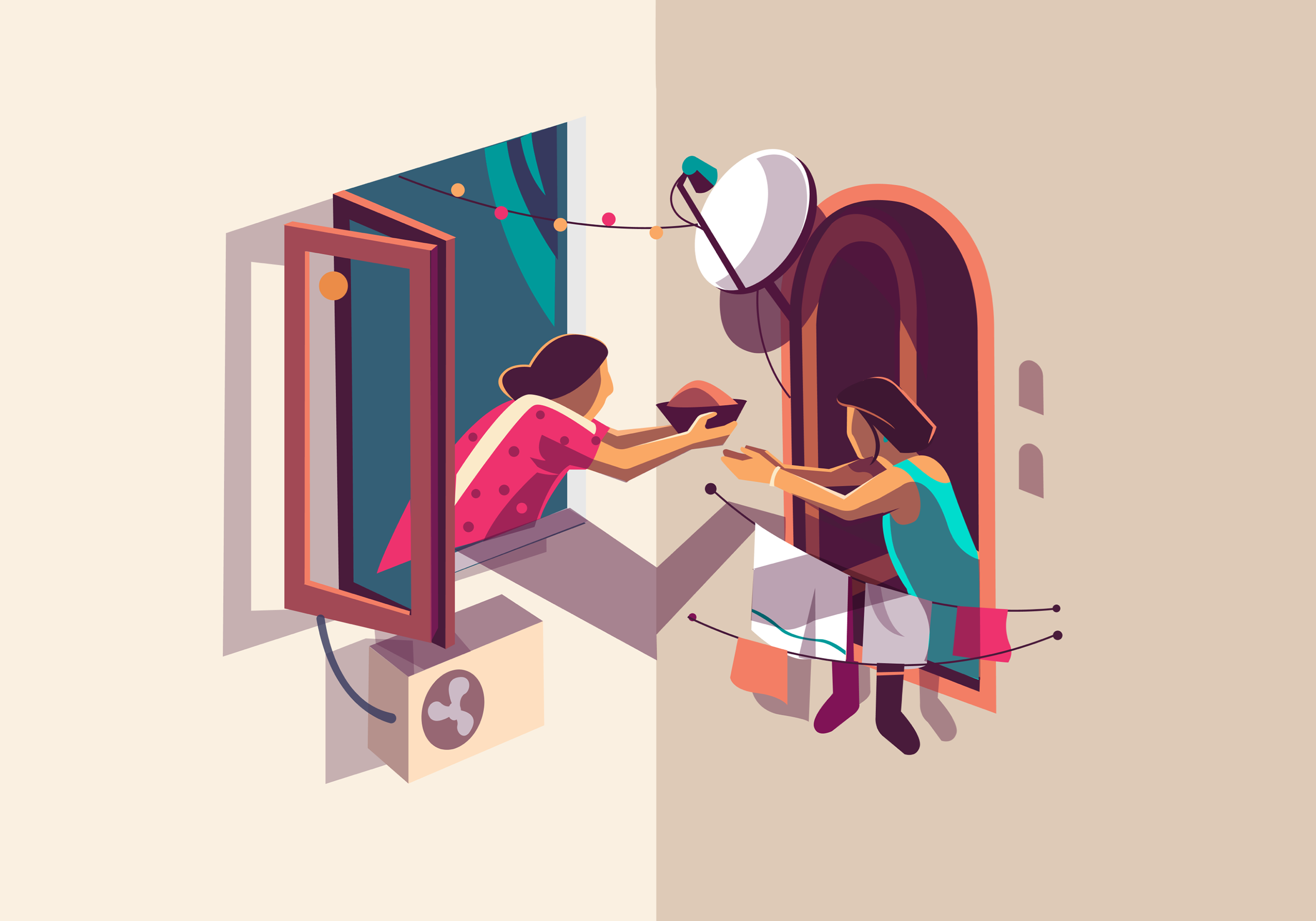 窗户后的人生百态:印度插画师ranganath krishnamani插画作品