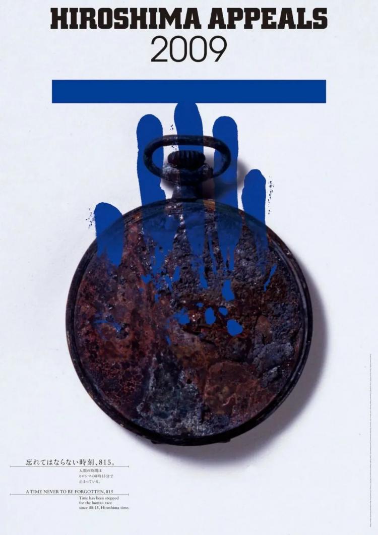 18luck新利全站 理念:浅叶克己以广岛事件爆发的时间——1945年8月6日上午8点15分为18luck新利全站 主题,手掌印清晰的印在已经老旧生锈的表钟之上,正如这张海报的名命:忘れてはならない時刻、815(你永远不能遗忘的时刻,815)。