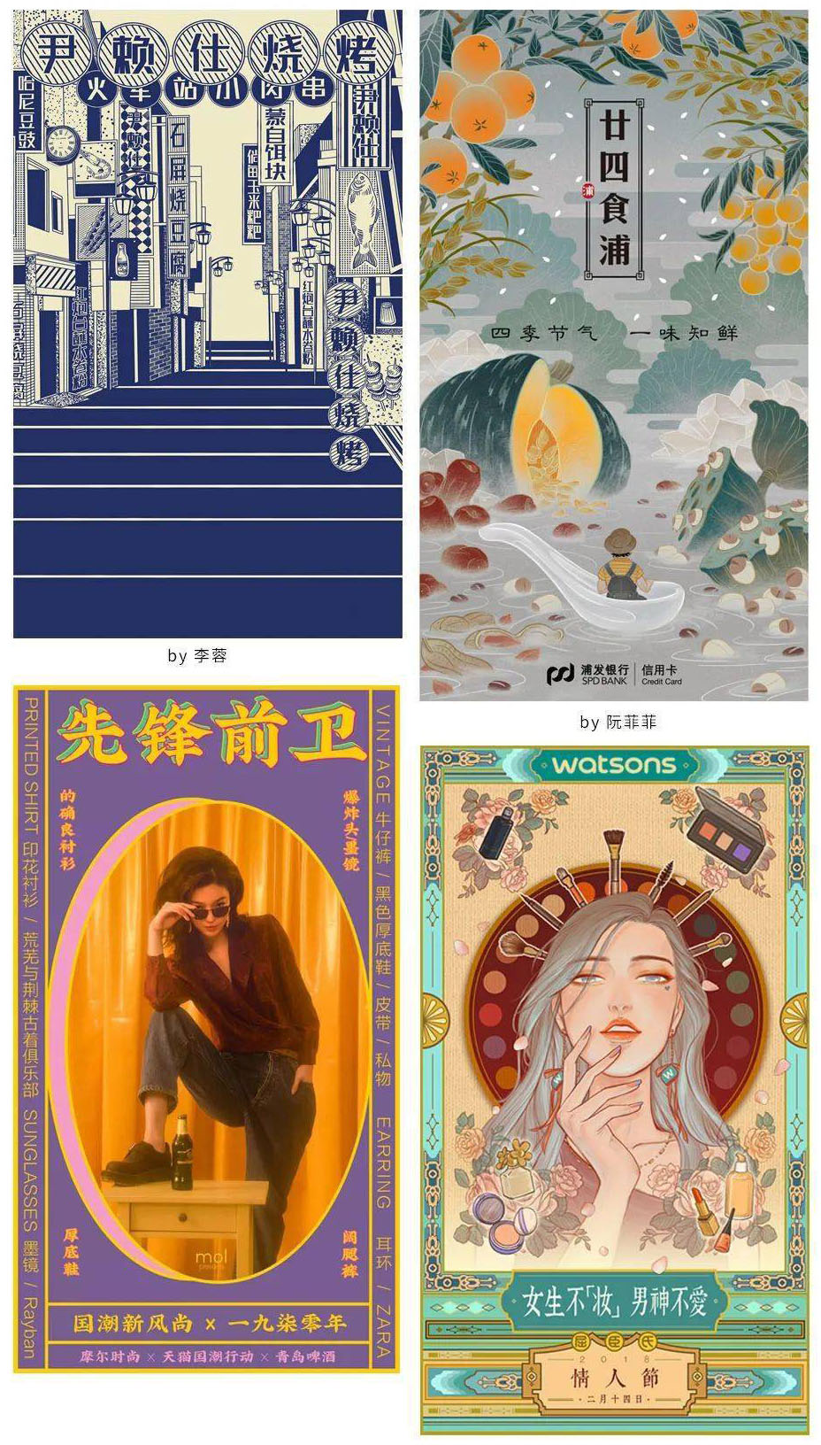 在潮流背景下,越来越多的国货品牌开始运用“国潮”风格海报进行宣传。