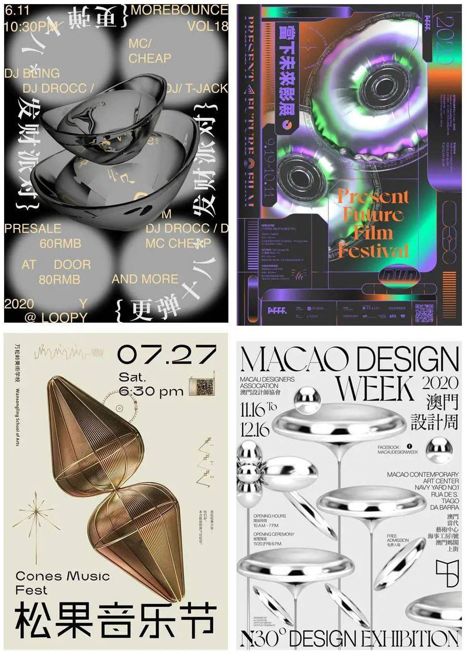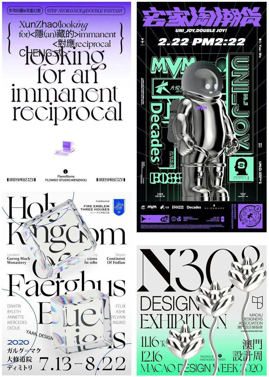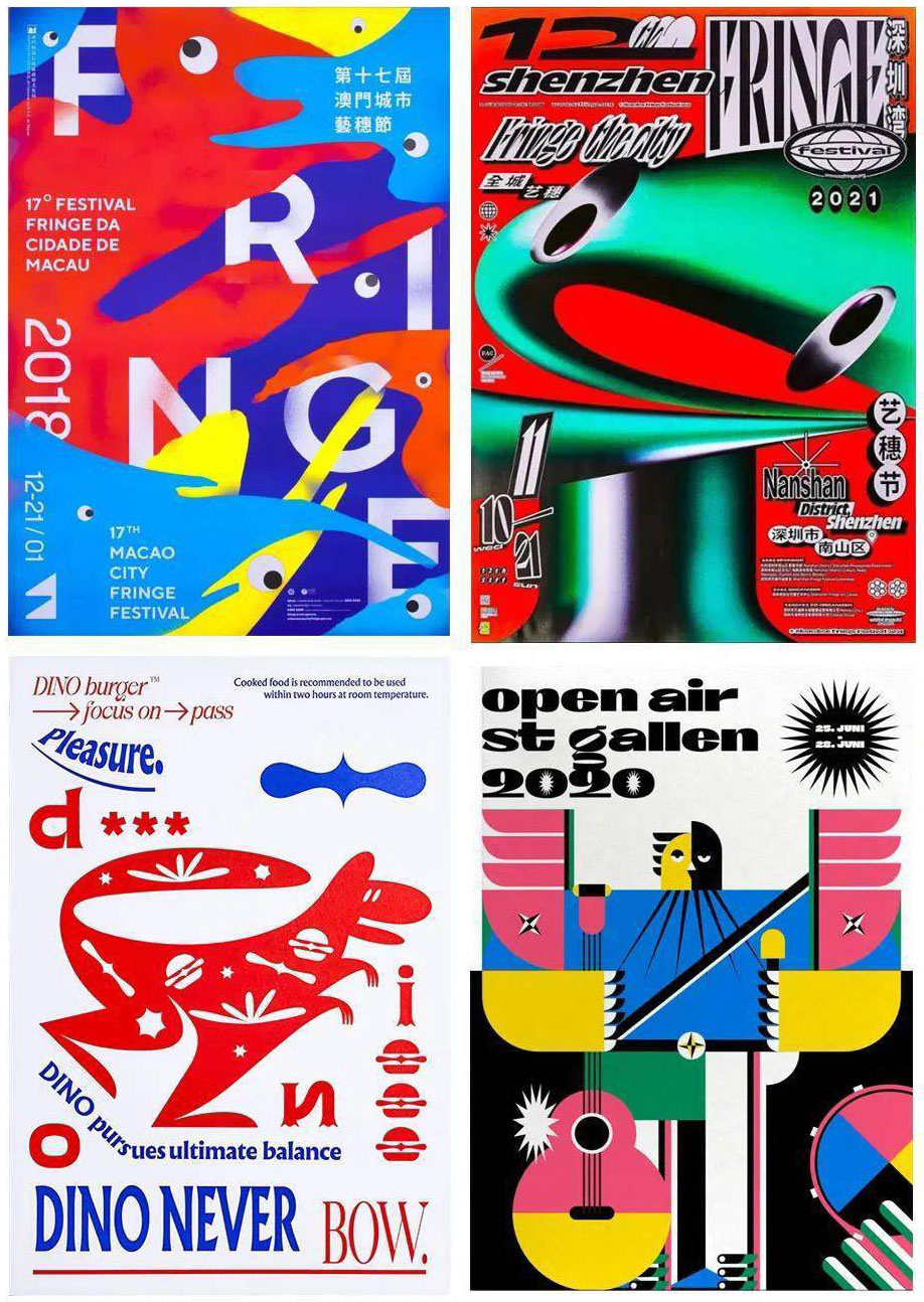 酸性风格的18luck新利全站 以各种特殊的图形、高饱和度渐变色以及金属、流体等个性的质感所呈现,个性十足!
