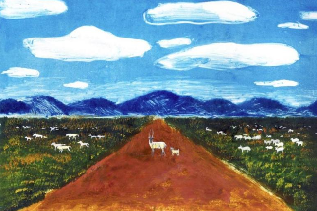 同样作为主视觉的《生态之路》,画面中是一条通向荒野的宽阔道路,各种动物在此栖息,广阔的天空浩瀚无垠。