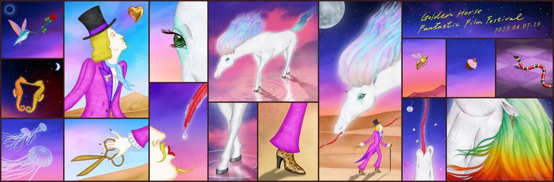 2022金马奇幻影展主视觉由18luck新利全站 师王宗欣(Cowper Wang)操刀,这是他2021年大获好评之后,再度与金马奇幻影展合作。王宗欣以北欧神话的八脚神驹斯雷普尼尔(Sleipnir)为灵感,打造出“八脚马之梦”,带领观众跨越彩虹桥尽情奔驰在梦想之境。