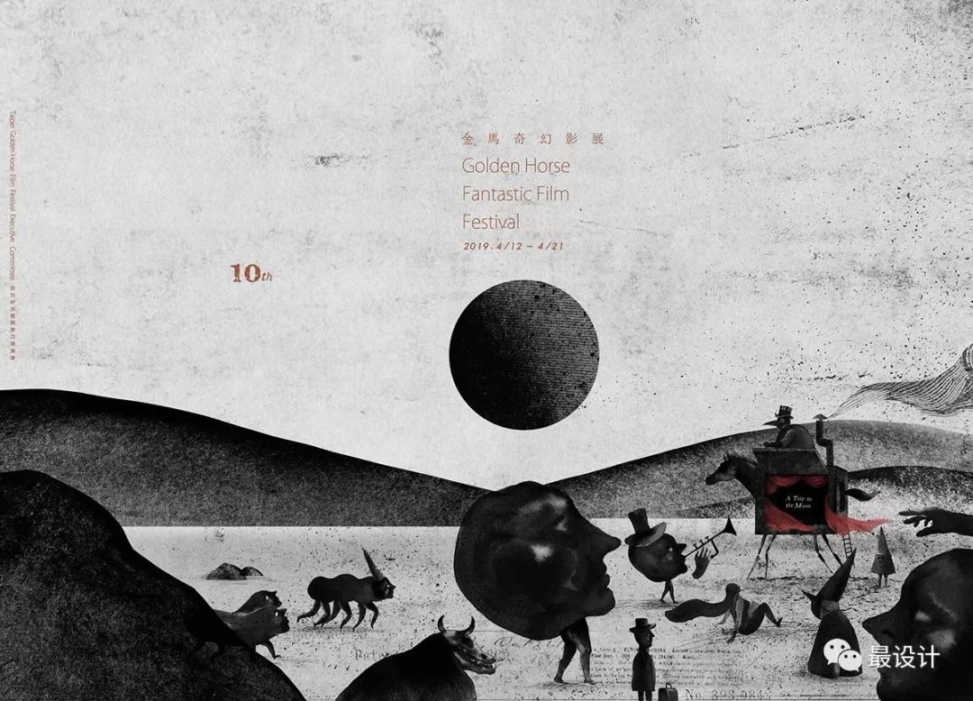 2019主视觉也是来自安哲,他打造了一个“月球上的奇幻剧院”,以优美又充满想像力的图案,巧妙展现了电影、影展和观众之间的关系。