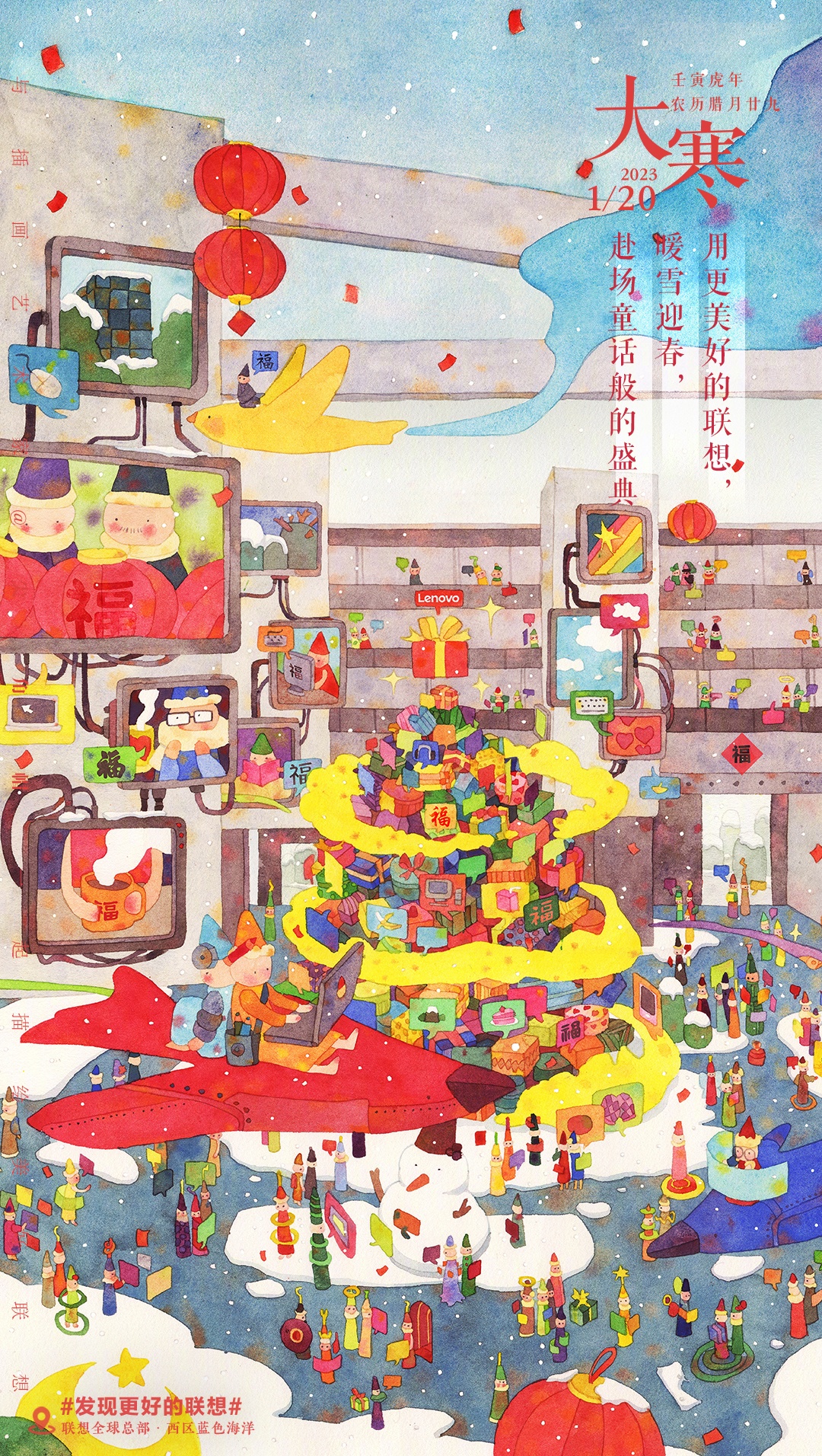 联想节日节气主题插画风格海报18luck新利全站 欣赏