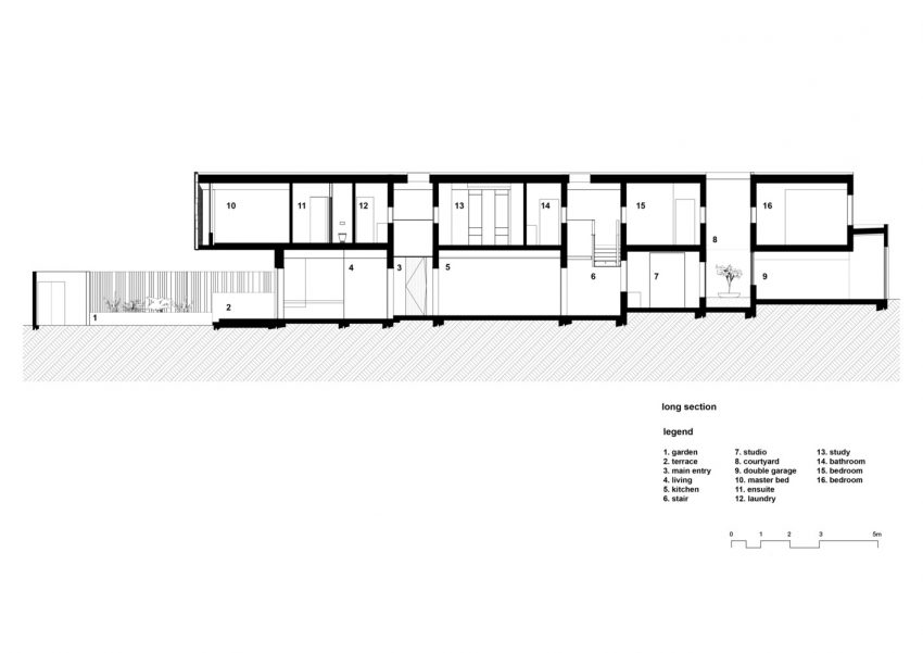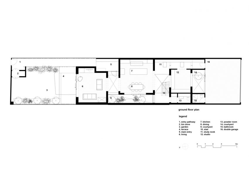 房屋地块本身也相当狭窄,因此房屋呈隧道状。然而,地块上也有足够的绿地空间,所以你也可以在外面凉快一下。