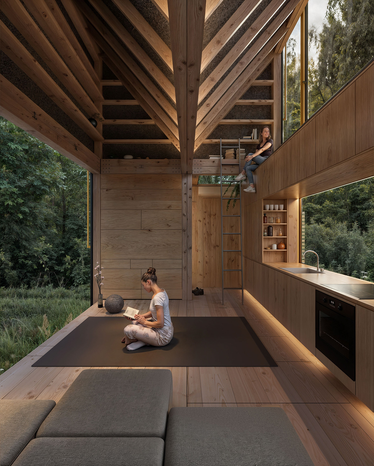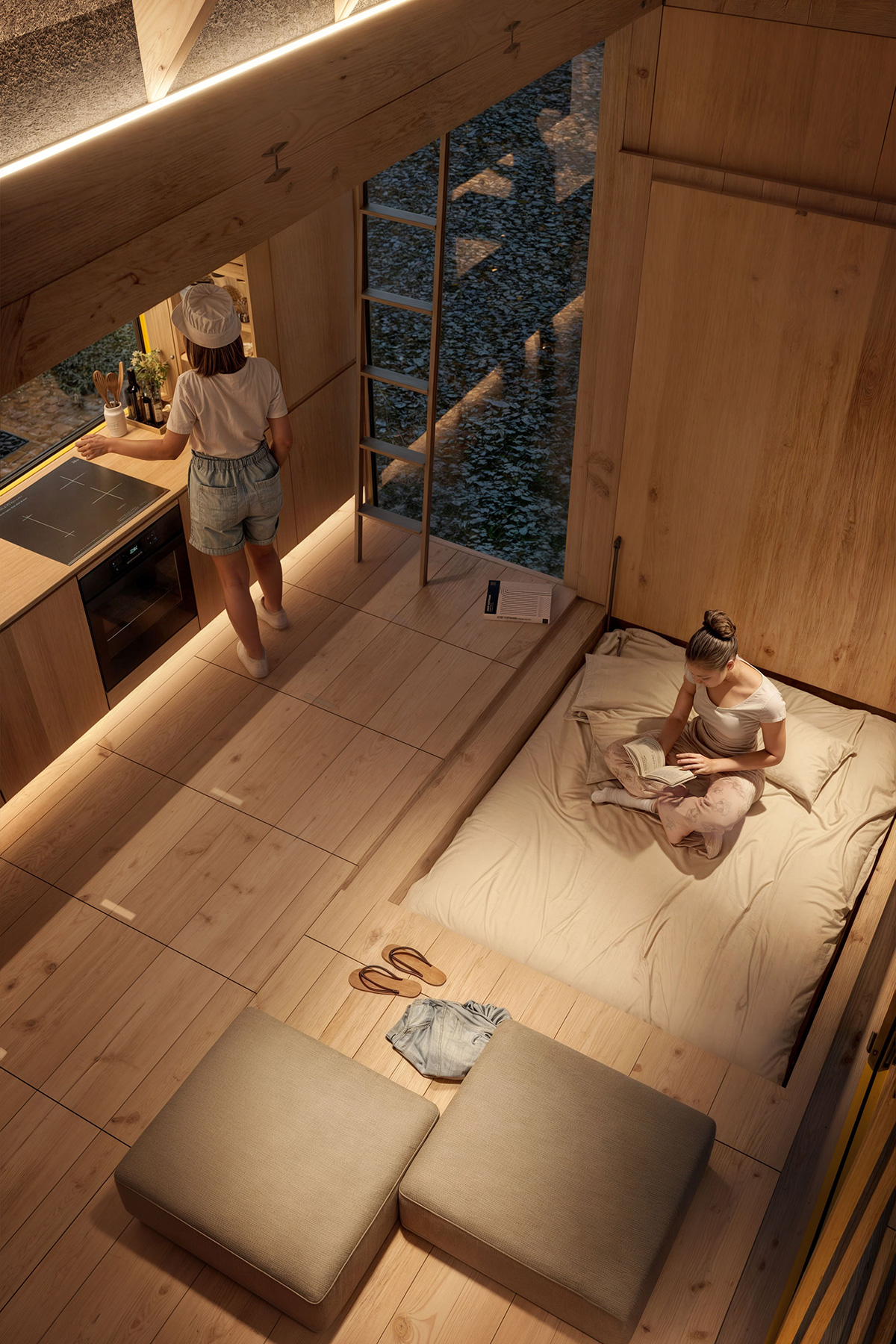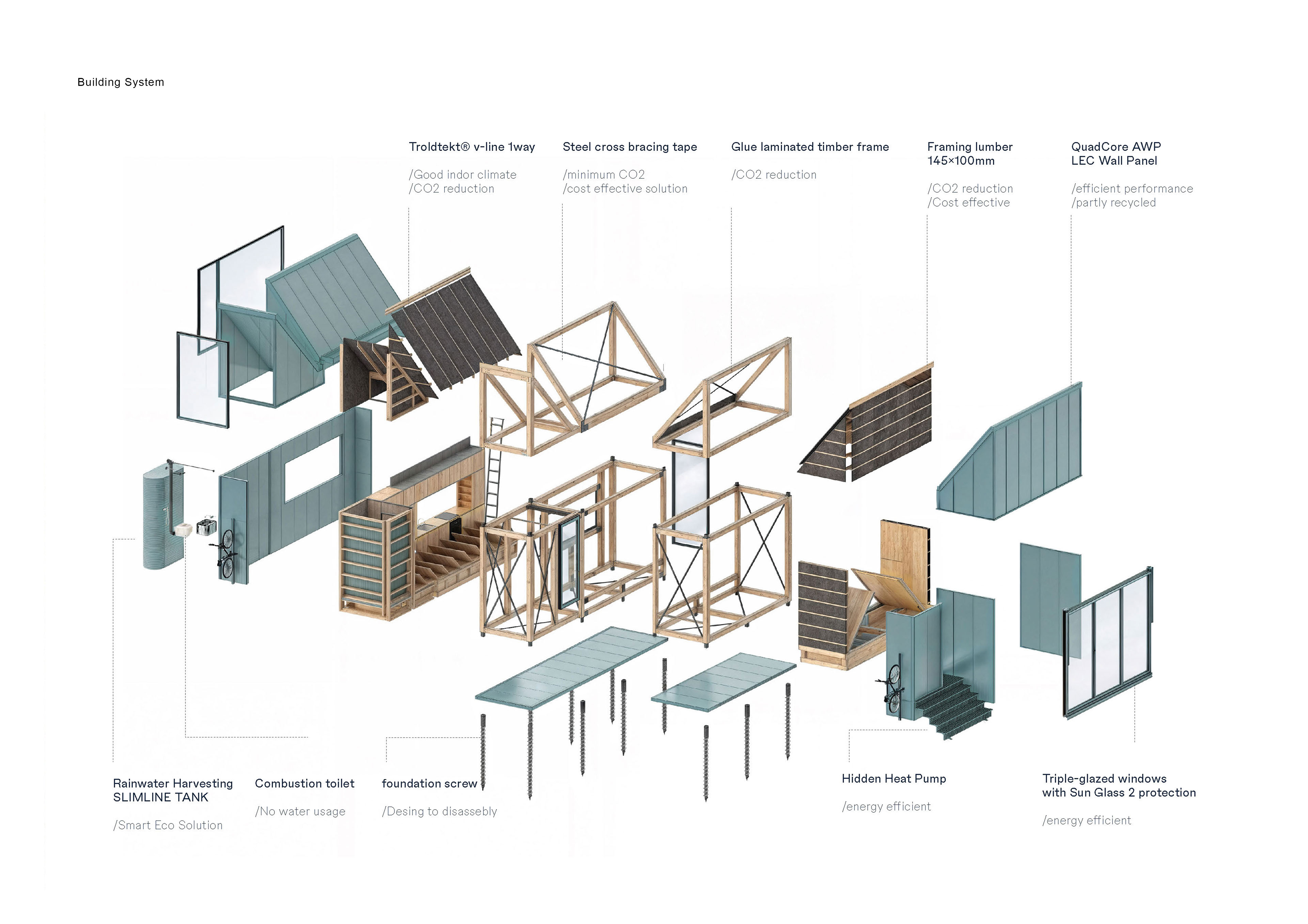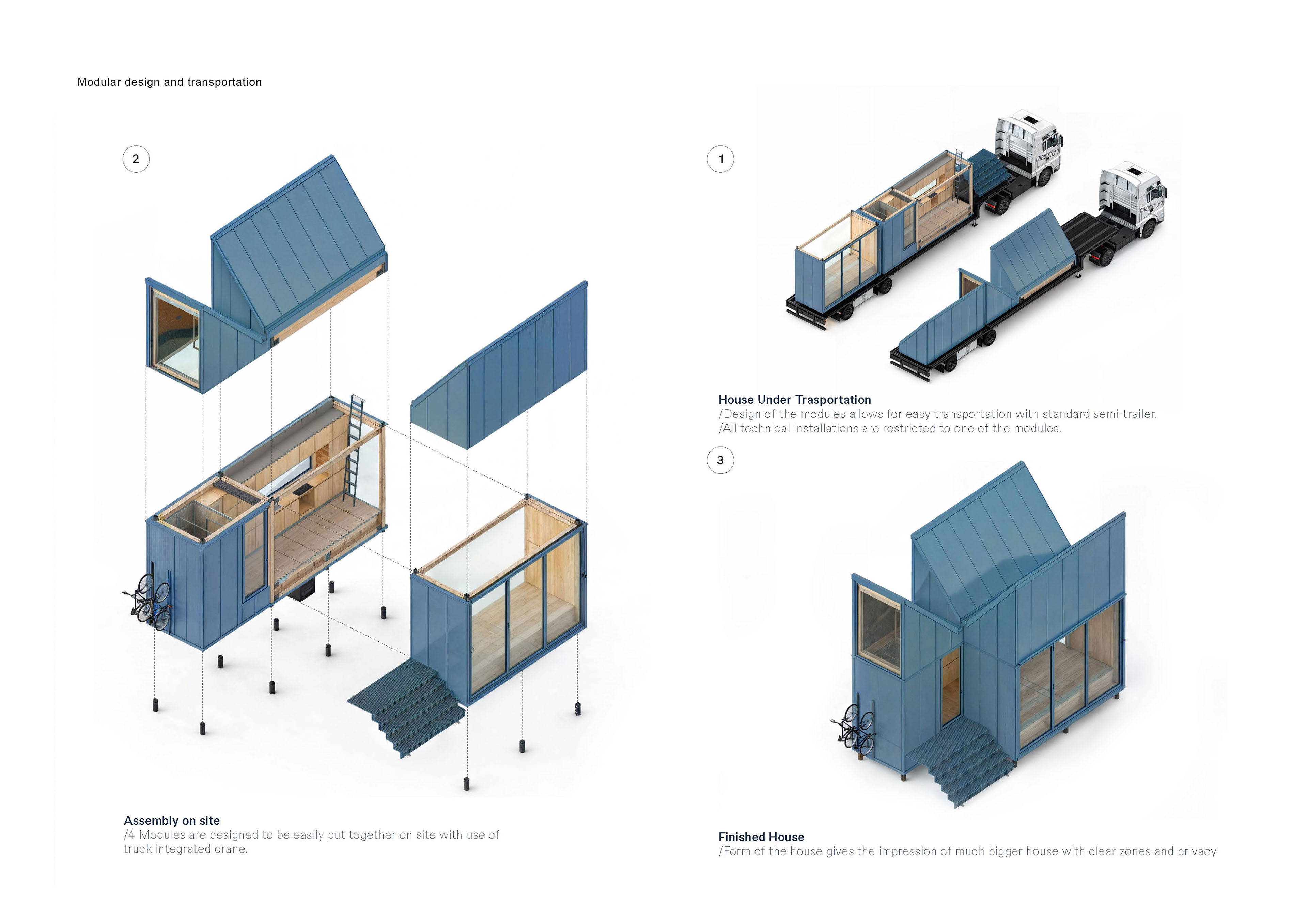 微型住宅通常被描绘成原始乡村风景中的孤独的离网小屋。相反,这个项目发生在已建成村庄的农业景观中,旨在通过离网资源方式加强现有社区。这个想法是将退化的农田转变为具有可再生能源资源的自给自足的生活,以保护原始自然,成为人类和地球更健康的生活方式。使用农田的好处是,它提供了现有的基础设施,在交付房屋和居住时都很容易到达。