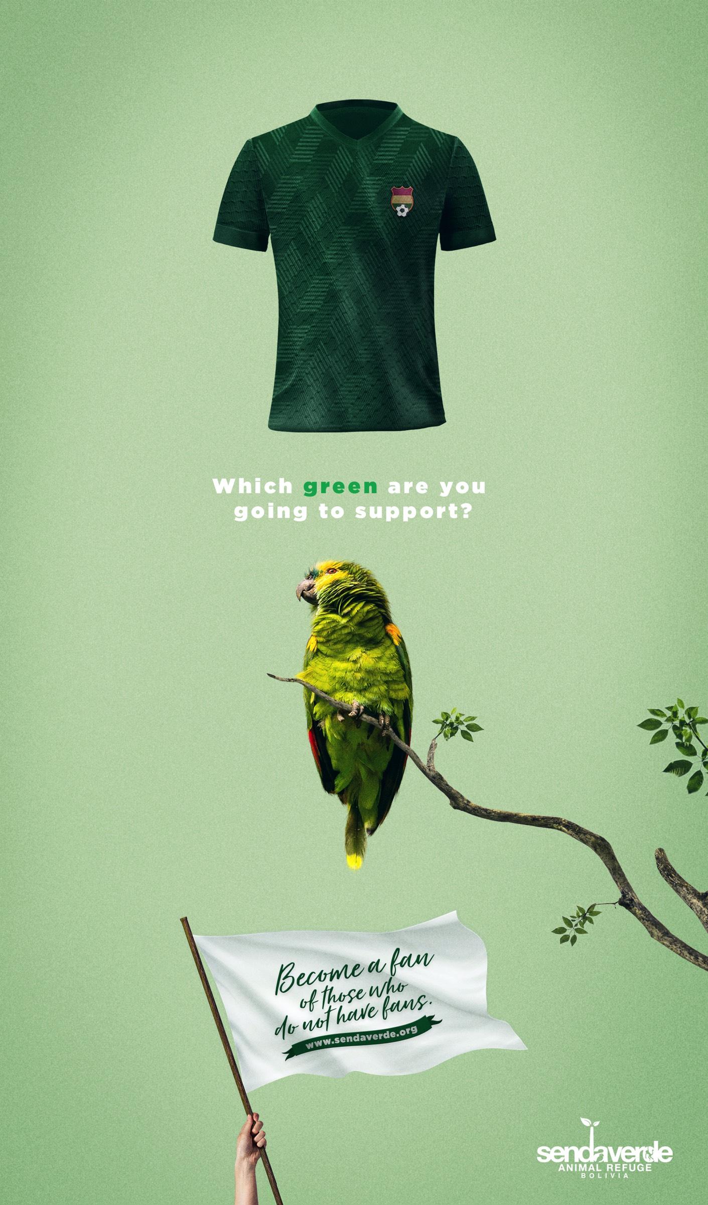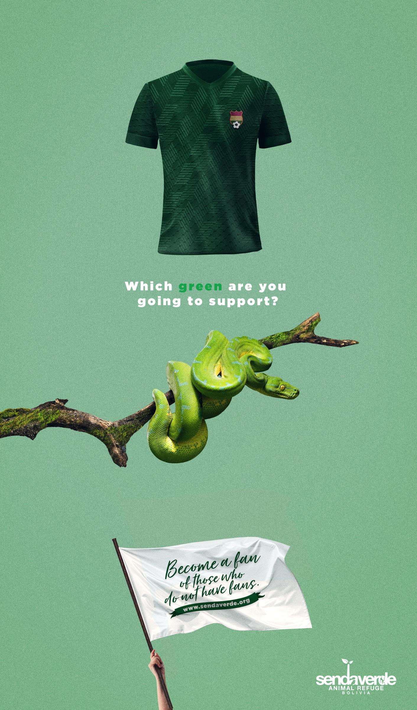 Senda Verde是玻利维亚一家18岁的动物保护非政府组织,负责照料和医护那些被人类虐待的动物。今年,我们利用了巴西杯2021号球赛的优势,来测试“绿色”的球迷,问他们将支持哪些“绿色”。