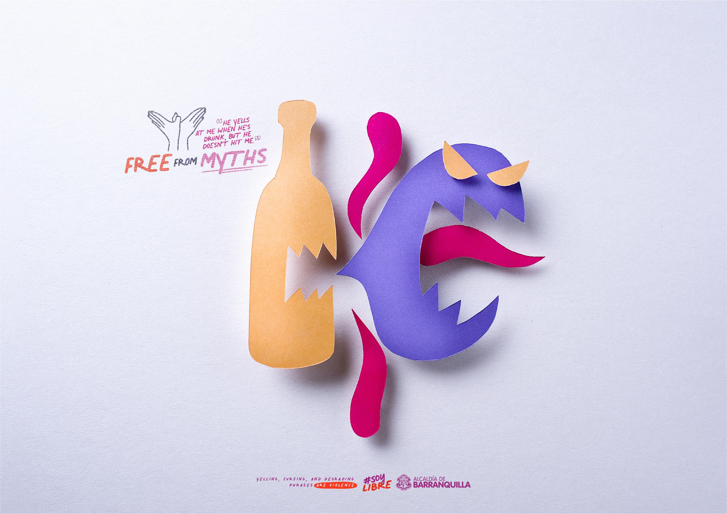 广告向女性传达,没有理由受到虐待,没有理由为虐待辩护,也没有理由使威胁她们的正直的行为正常化。是时候把自己从神话中解放出来了。