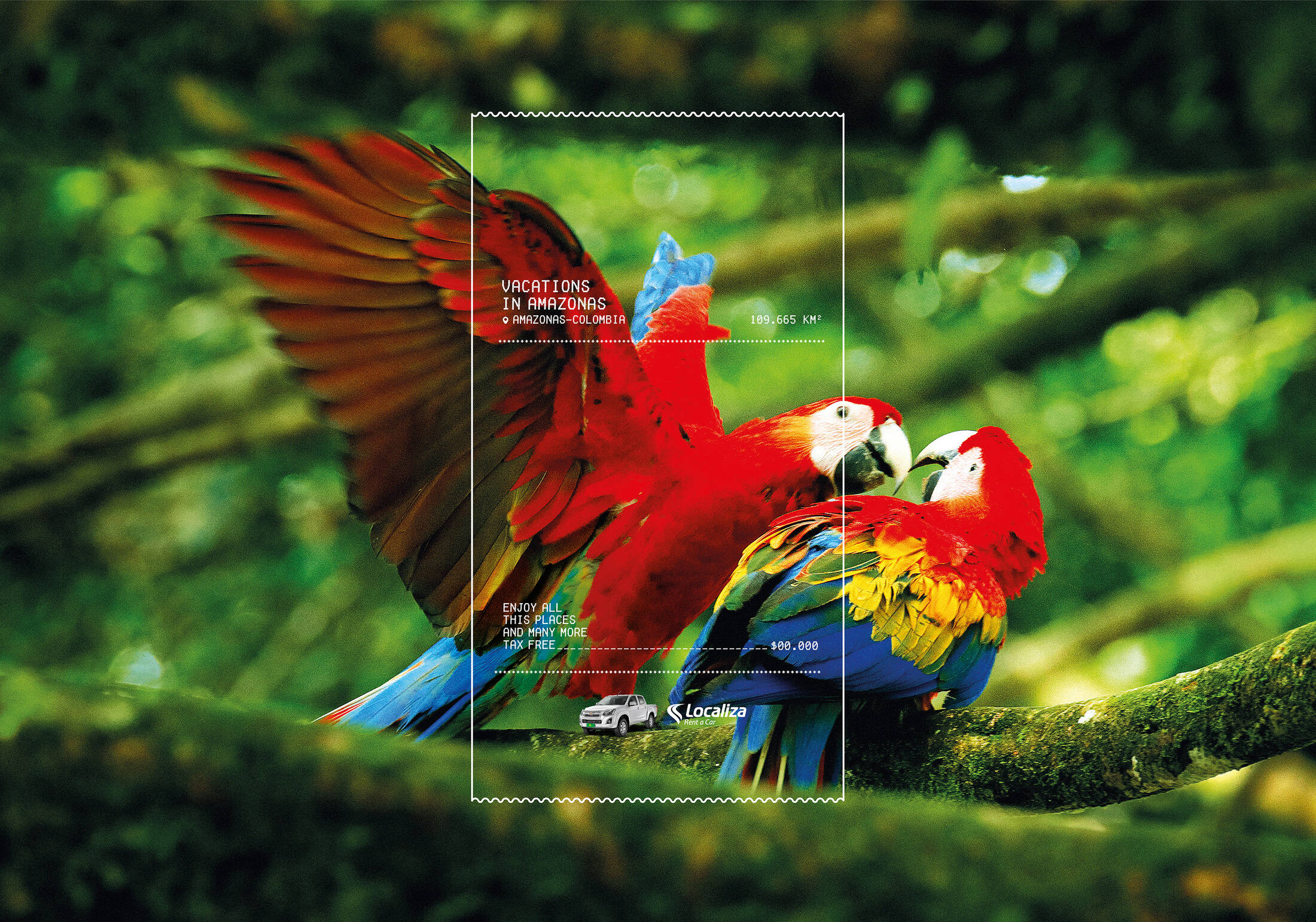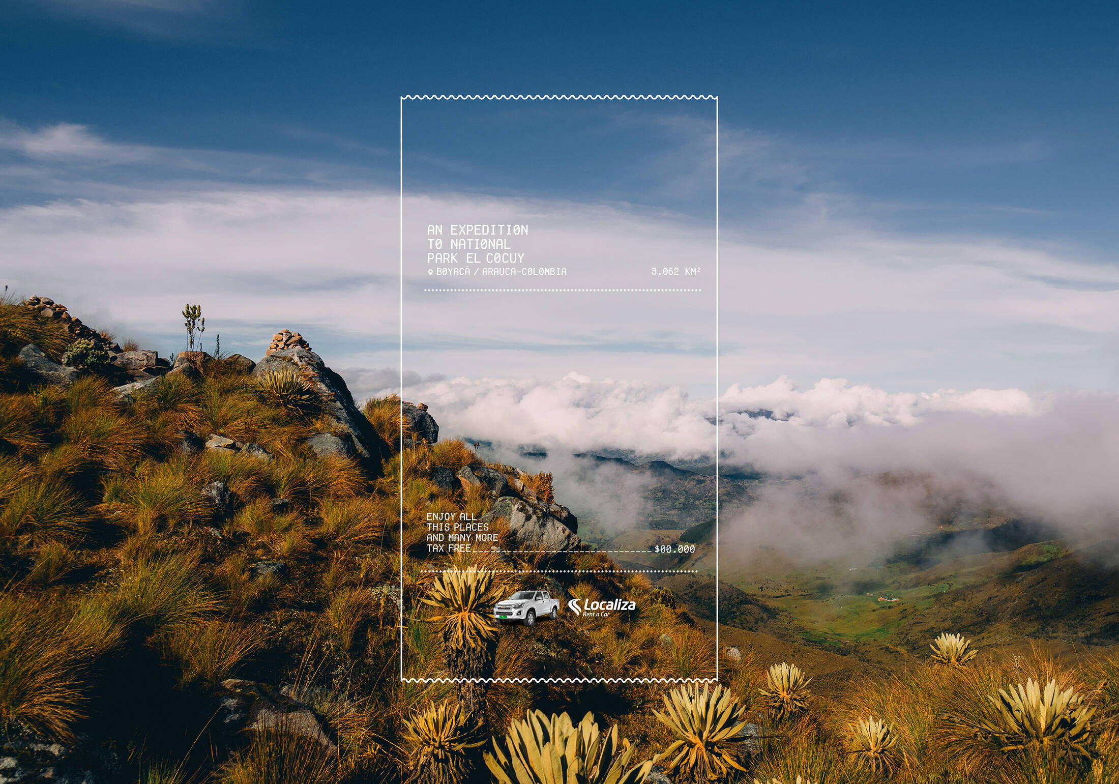 为了在新冠肺炎后恢复哥伦比亚经济,政府签署了一项法律,取消对旅游业征税。因此,Localiza租车公司决定利用这一优势,免税宣传哥伦比亚的风景。