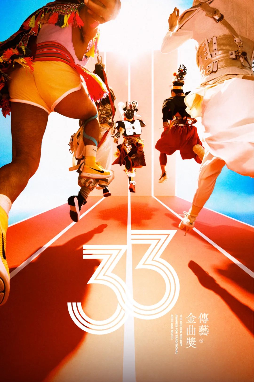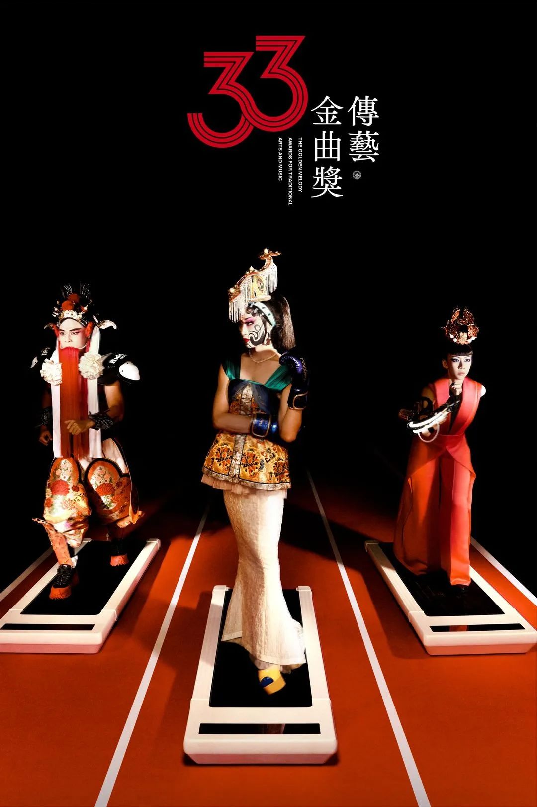 第33届传艺金曲奖主视觉logo,象征着聚光灯下的表演者们踏上的既是舞台,也是赛道。每一次的技艺展演,都是一场艺术竞技的碰撞。
