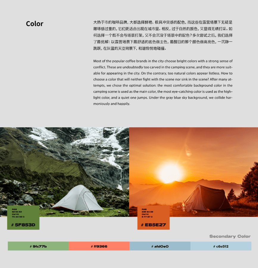 以露营场景下最舒适的底色做主色,辅以高亮色