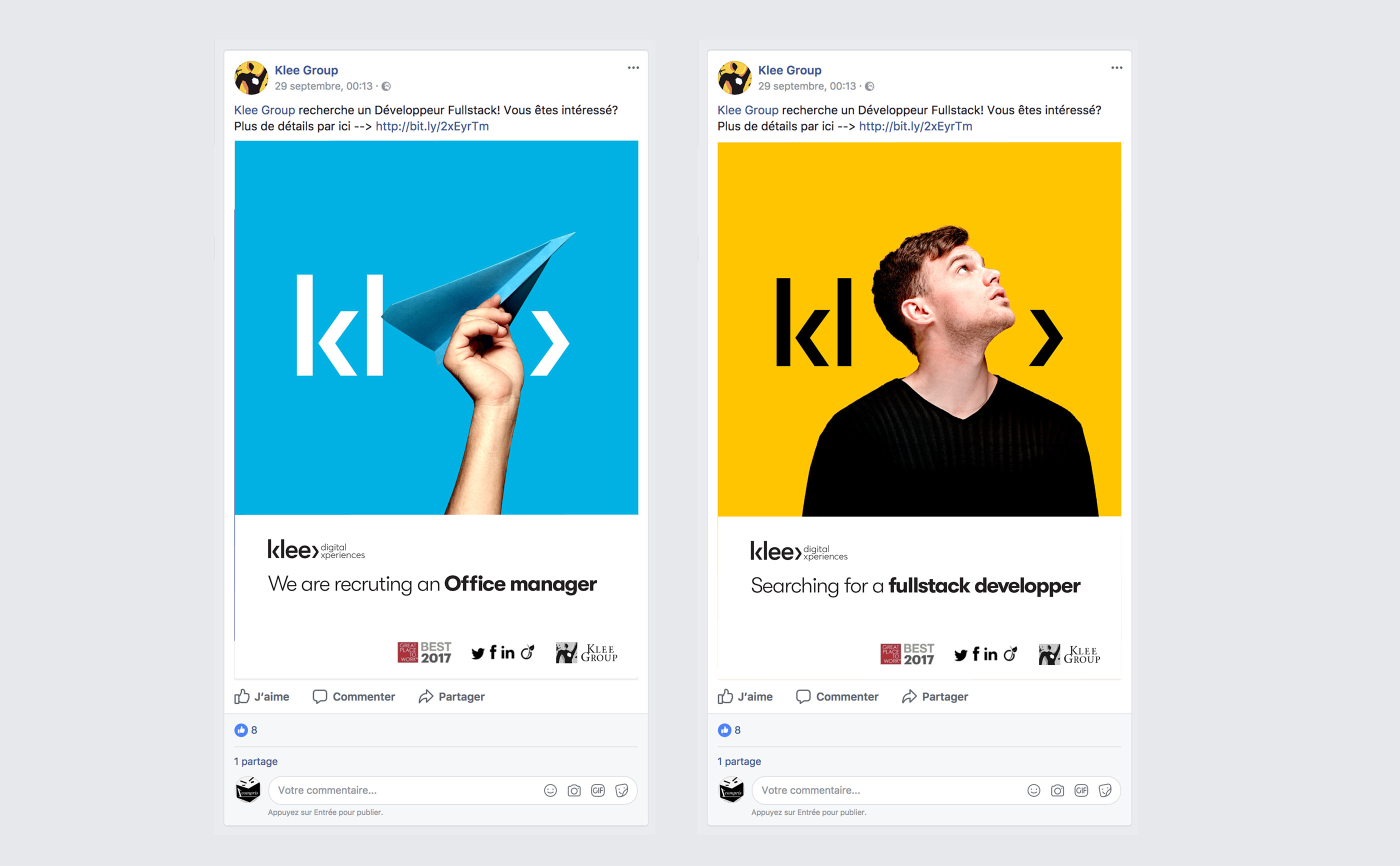 正是在这种背景下,Graphéine于2017年9月陪同Klee Group。我们定义了品牌战略,并为其名为“Klee Digital”的新360服务创建了视觉标识。