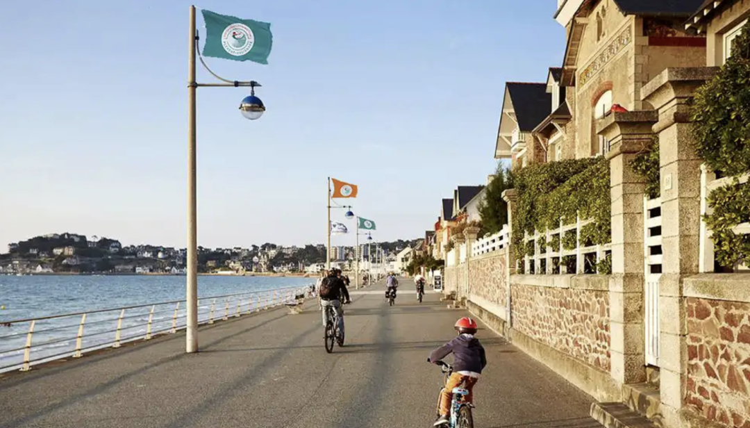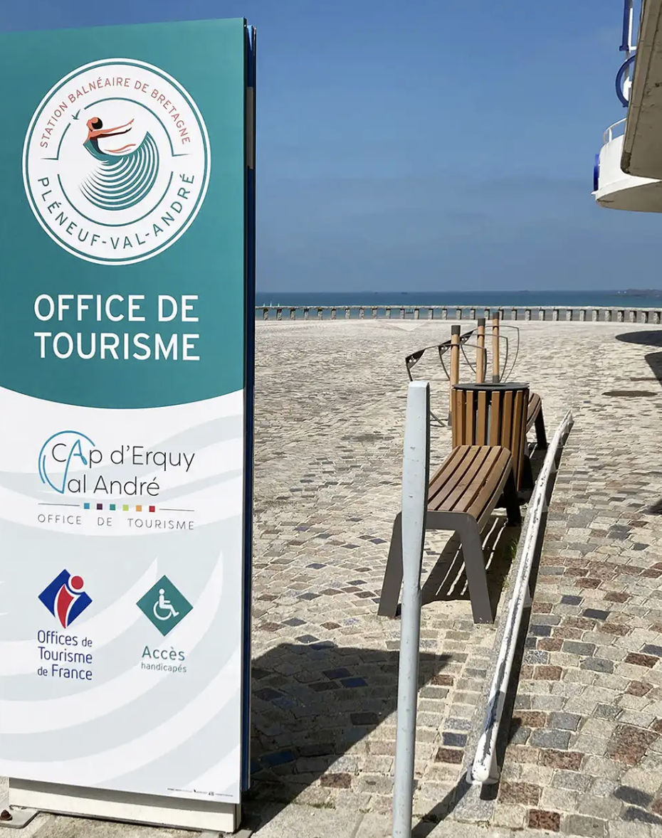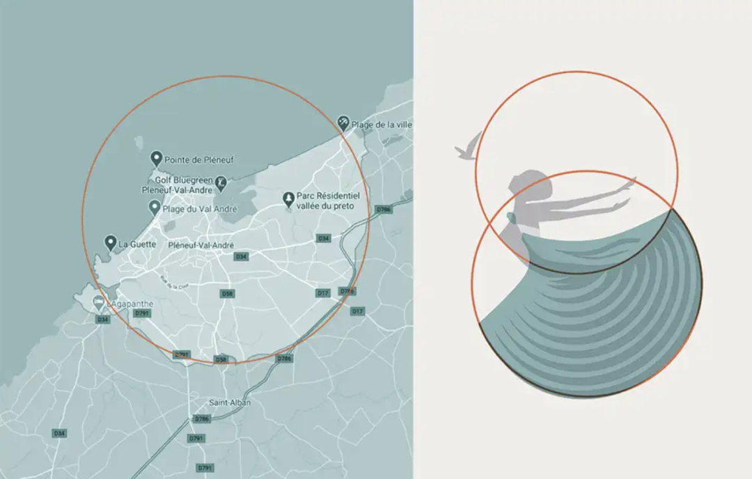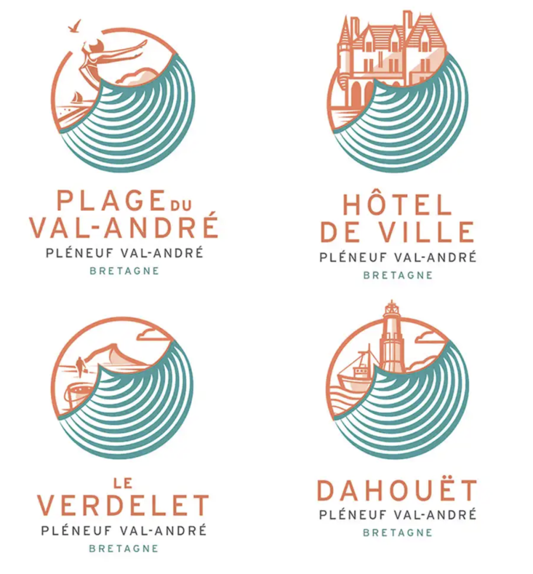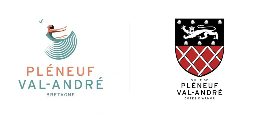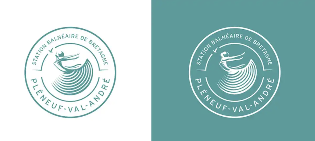 logo既现代又优雅,一位舞者面朝大海翩翩起舞, 蓝色裙子上的条纹让人想起了层层海浪,象征海滨度假胜地的生活质量和福祉。裙子是 Pléneuf-Val-André 行政区轮廓图。