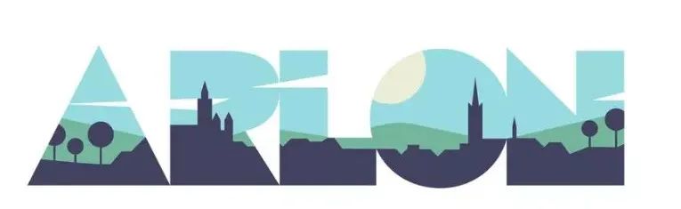 标识围绕阿尔隆的法语名称“ARLON”展开18luck新利全站 ,每一个字母内部都嵌入了与城市有关的插图。