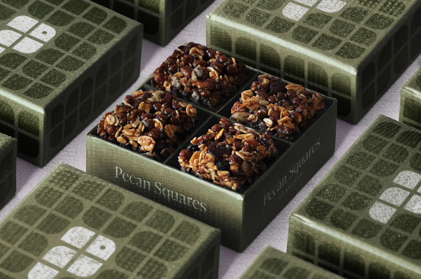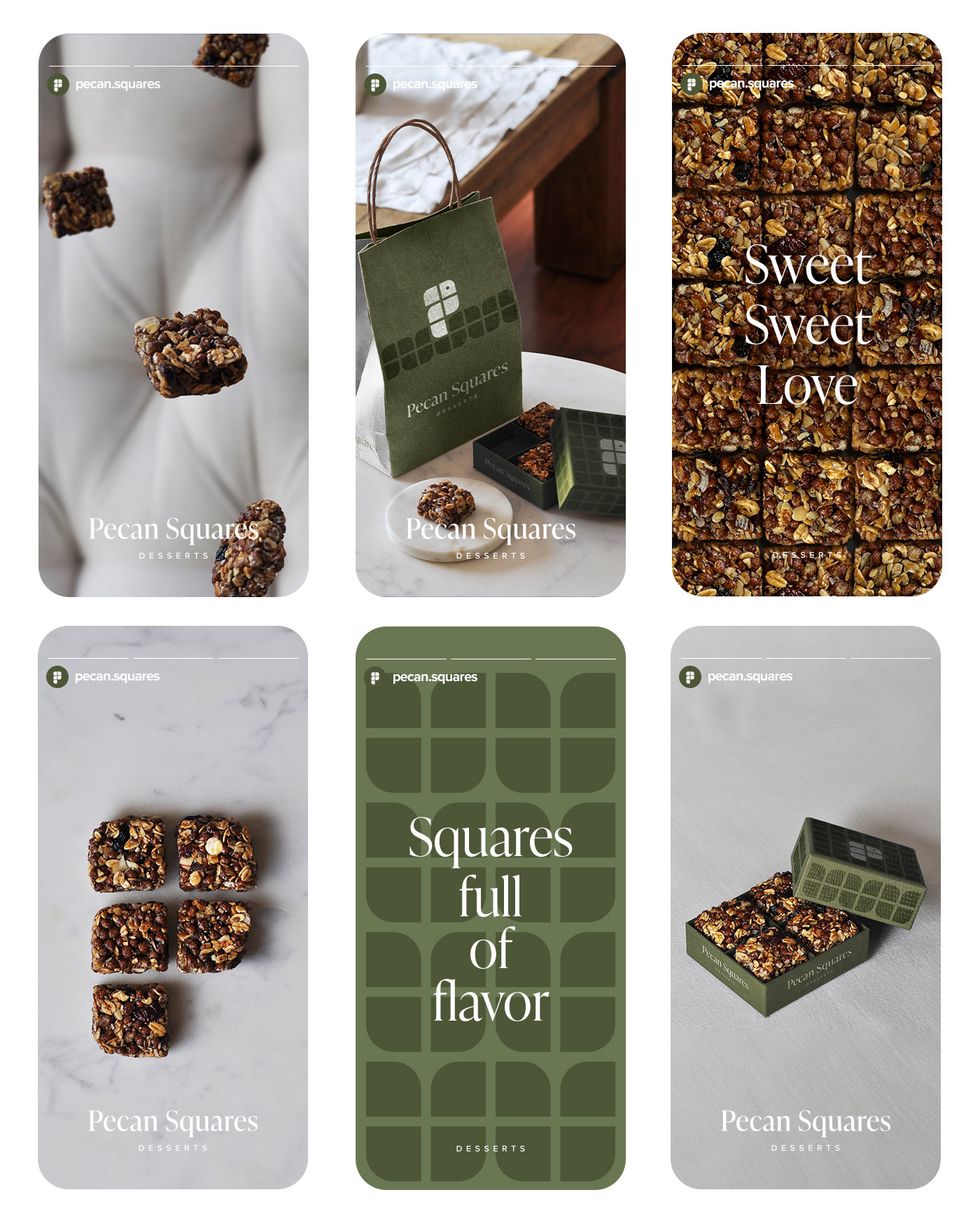 Pecan Squares 是一个用山核桃制作美味自制甜点的品牌。 视觉、味觉和触觉是贯穿整个品牌形象的属性,赋予这个品牌更新带来独特和动态体验的可能性。