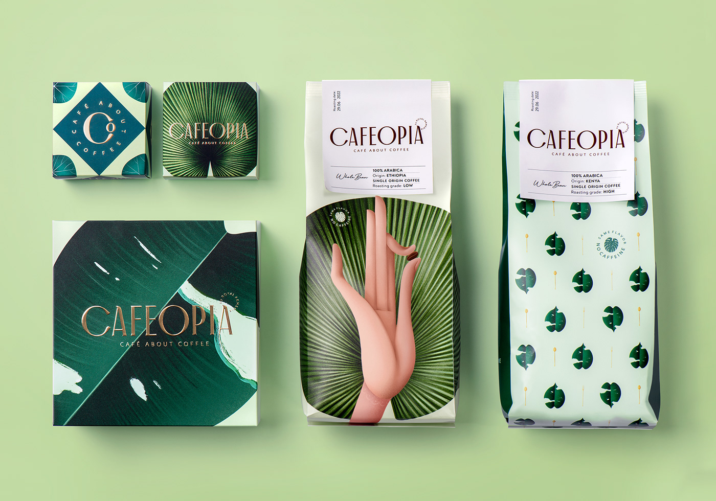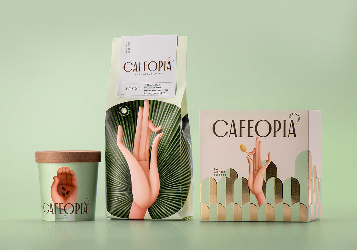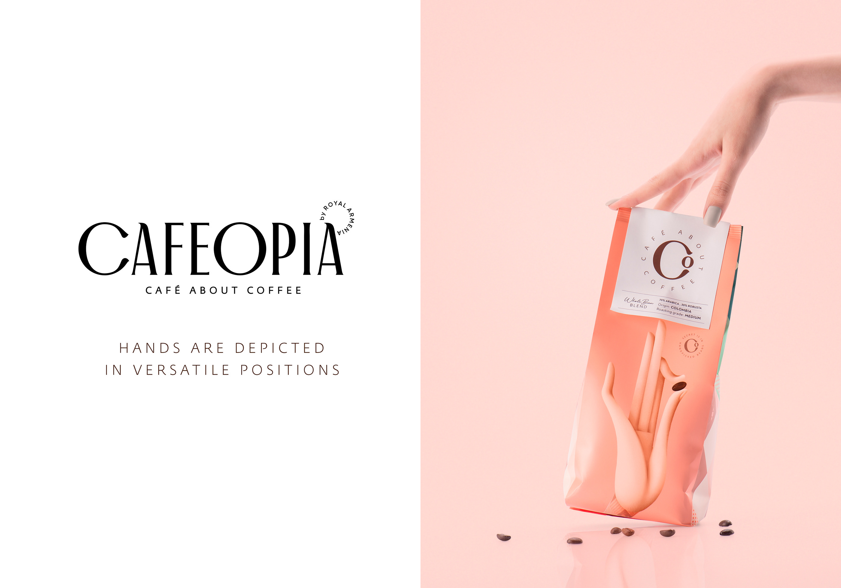 我们的视觉识别概念围绕着手工采摘的豆子,使人的手成为核心。 与其他使用丰满角色的品牌不同,我们通过将人手变成角色,为Cafeopia创造了独特的品牌角色。 我们对图案和颜色的使用强化了手绘插图,强调女性气质或男性气质,并赋予它们个性。 将双手变成英雄使我们能够在不同的位置使用它们,握住不同的物品,例如咖啡豆或方糖。 事实证明,这个概念对 Cafeopia 很有帮助,因为我们需要18luck新利全站 许多产品,包括咖啡包装、蛋糕盒和外卖架。