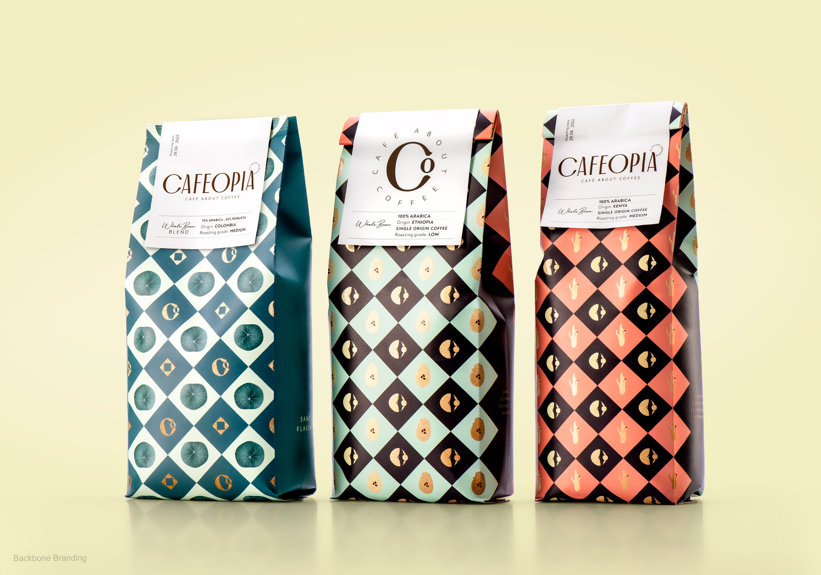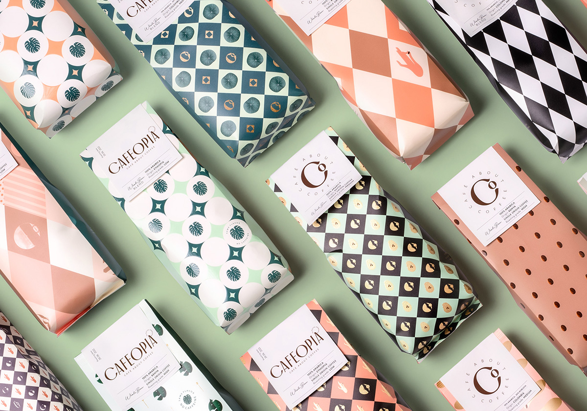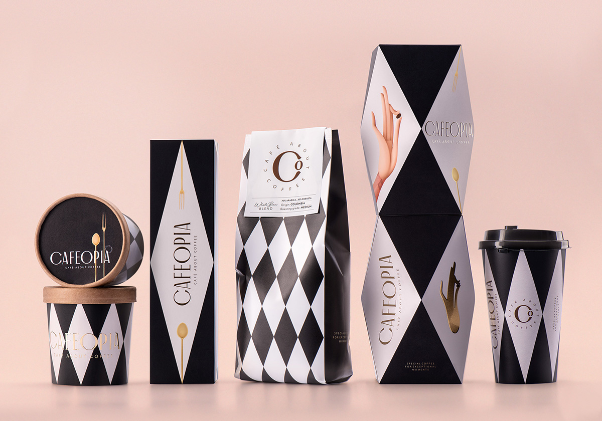 我们的视觉识别概念围绕着手工采摘的豆子,使人的手成为核心。 与其他使用丰满角色的品牌不同,我们通过将人手变成角色,为Cafeopia创造了独特的品牌角色。 我们对图案和颜色的使用强化了手绘插图,强调女性气质或男性气质,并赋予它们个性。 将双手变成英雄使我们能够在不同的位置使用它们,握住不同的物品,例如咖啡豆或方糖。 事实证明,这个概念对 Cafeopia 很有帮助,因为我们需要18luck新利全站 许多产品,包括咖啡包装、蛋糕盒和外卖架。