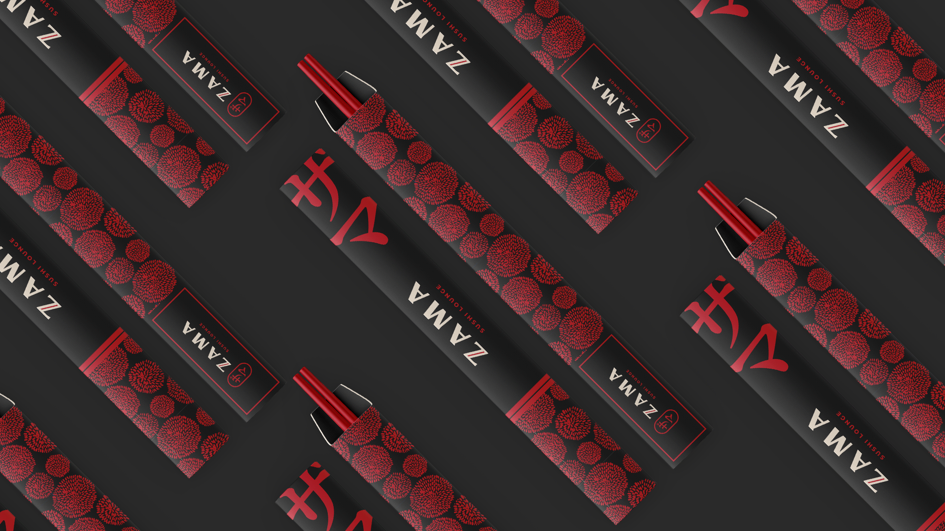 视觉身份的挑战是创建一个视觉系统,将ZAMA(一个由所有者合伙人“Elizama”的名字缩写而成的名字)与日本宇宙融合在一起。