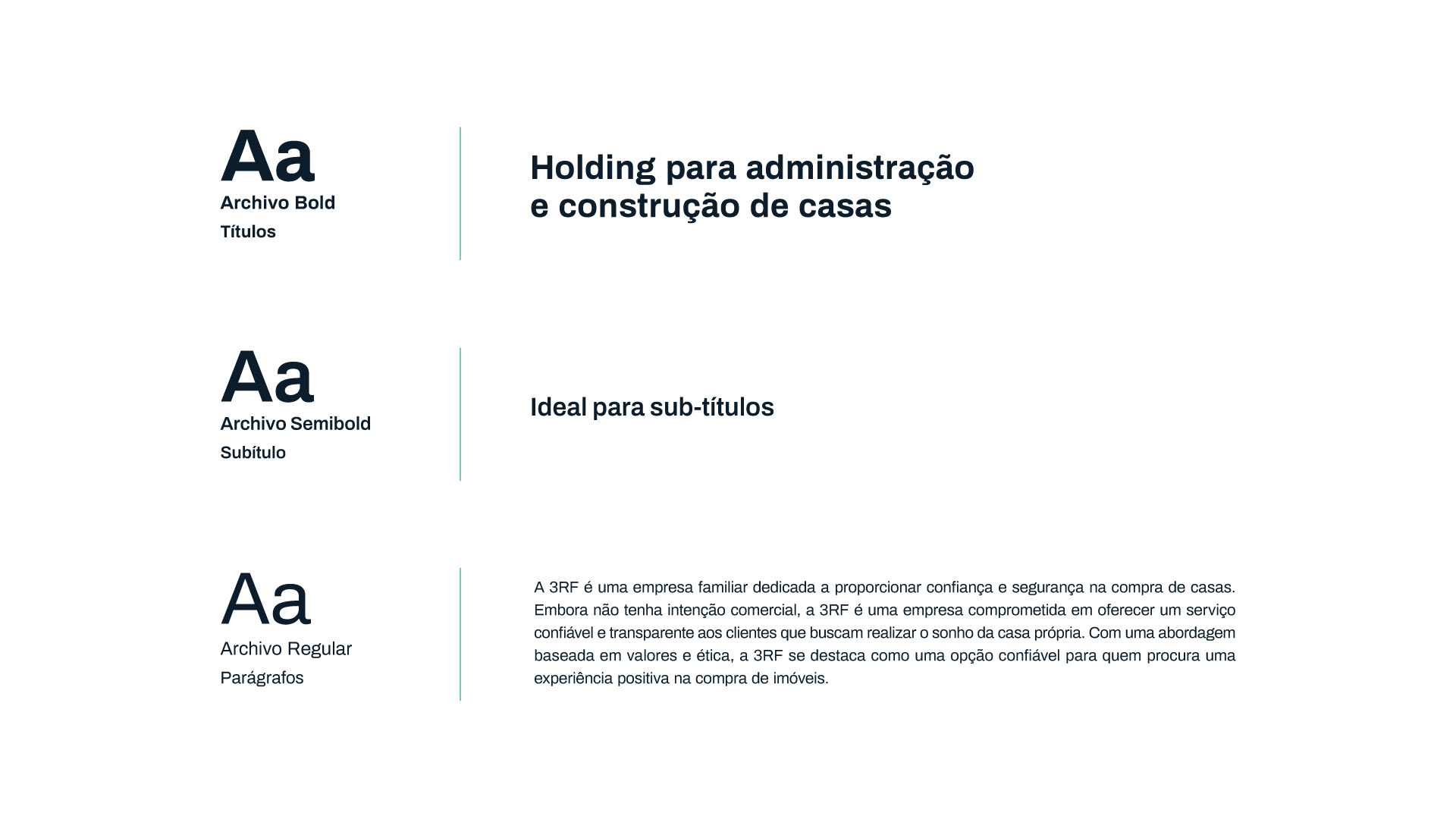 3RF 是一家控股公司,成立的目的是管理个人业务。3RF 是一家家族企业,旨在传递购房时的信心和安全感,不具有商业意图,但需要作为一家公司存在,现在拥有自己的视觉形象,可以识别以 3RF 名称开展的工作。