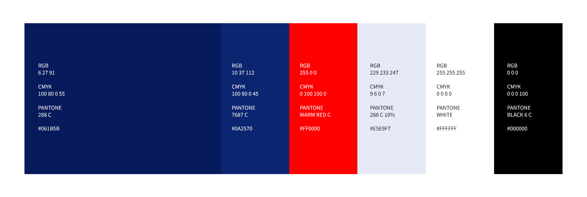 为了体现一家具有前瞻性的公司,同时仍然向其悠久的历史致敬,我们选择了一种自信的蓝色作为主色,并保留了详细的家族元素。公司的颜色现在更加现代和数字化,而红色仍然是主要的强调色。配色方案是动态的,但谨慎和专业,辅之以互补色来说明其他方向。
