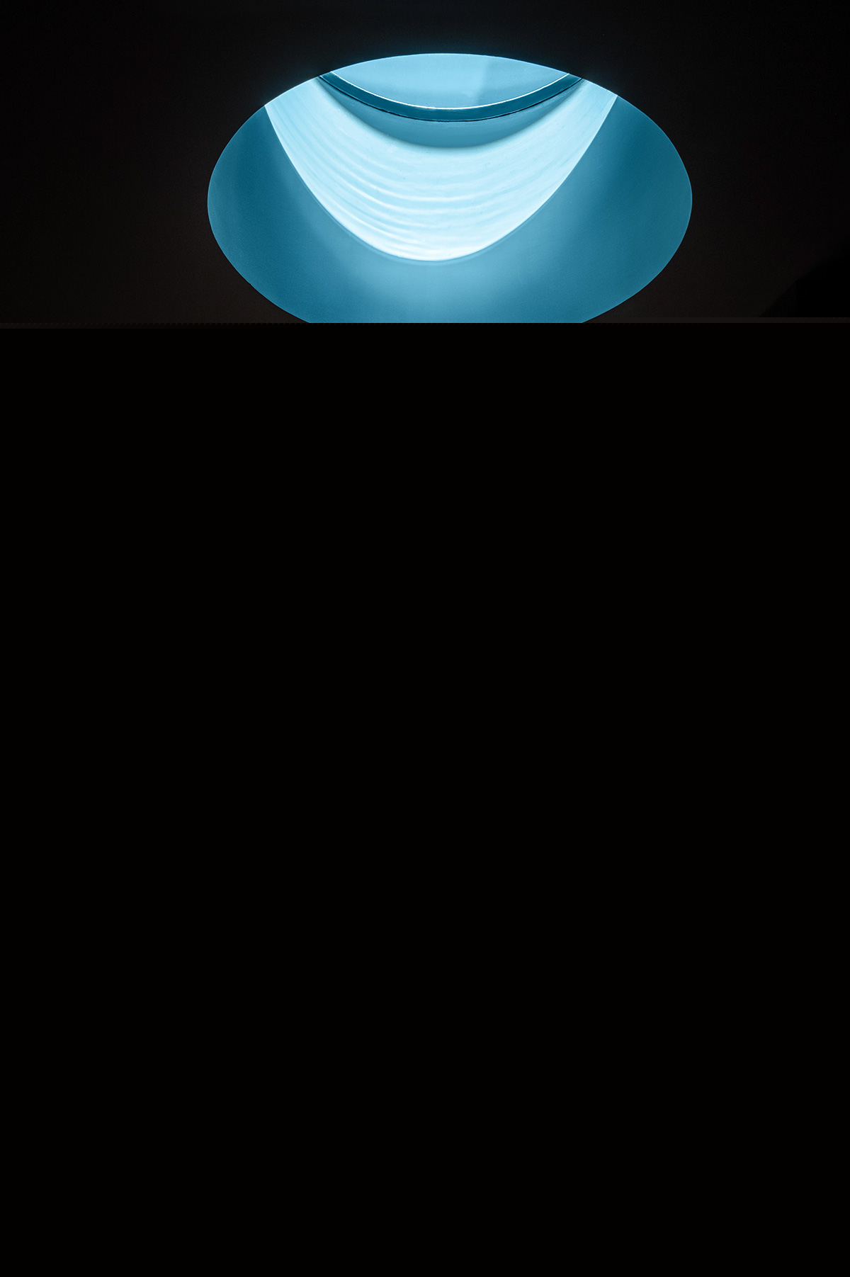 泳池底部的圆形舷窗可以看到下面的地板。于是,五楼房间之间的走廊成为了酒店最受Instagram关注的地方。透过天花板上的玻璃舱口,你可以看到蓝色的水柱和池中人们流畅的动作。