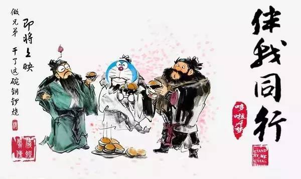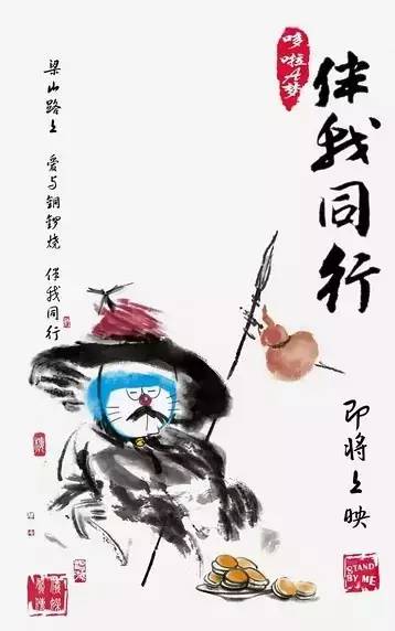 海报将中国京剧的蓝色红色为主色调,与“蓝”胖子搭配的相当生动,还有将各种中国名著作为融合元素的版本。