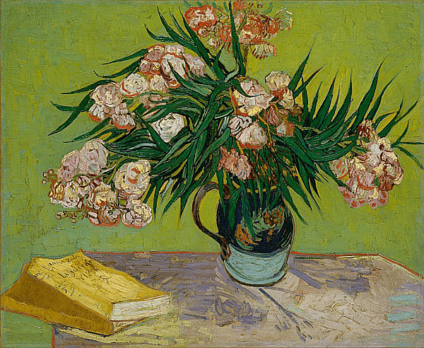 1888 花瓶中的夹竹桃与书 纽约大都会美术馆