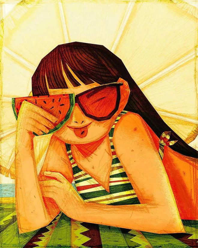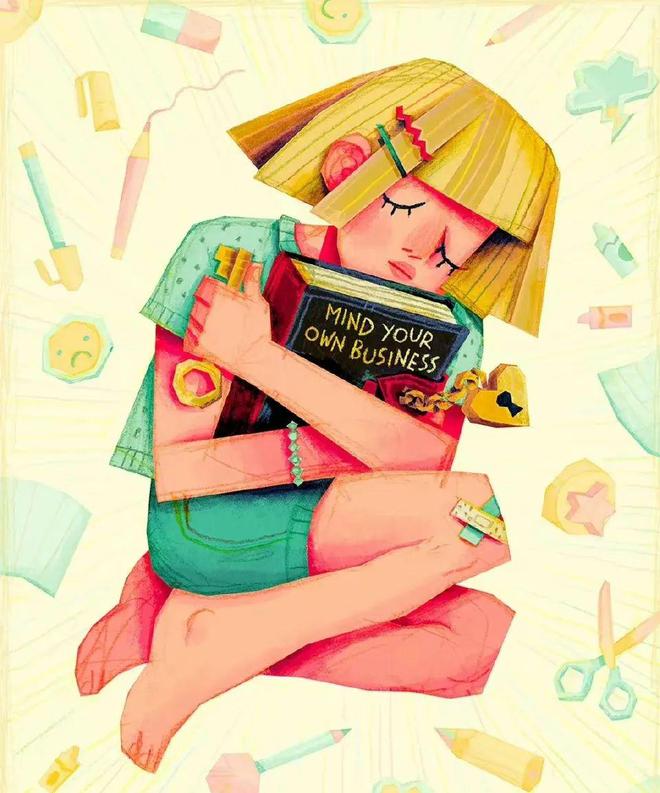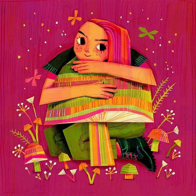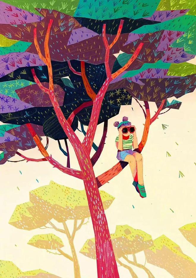 哈哈哈,以上只是在整活儿,咱们这里再聊聊意大利彩铅插画师Carlotta Notaro 的作品特点:她的大多数作品最亮眼的是彩铅的元素,再加上俏皮可爱的画风、剪纸风的视感让人回味无穷,最重要的是极为丰富的色彩、充满叙事的画面,灵动的想象,能瞬间给观众带来充满恣意的精神世界。