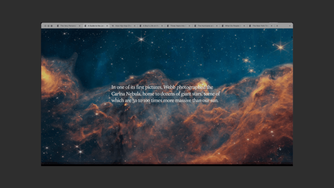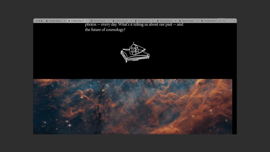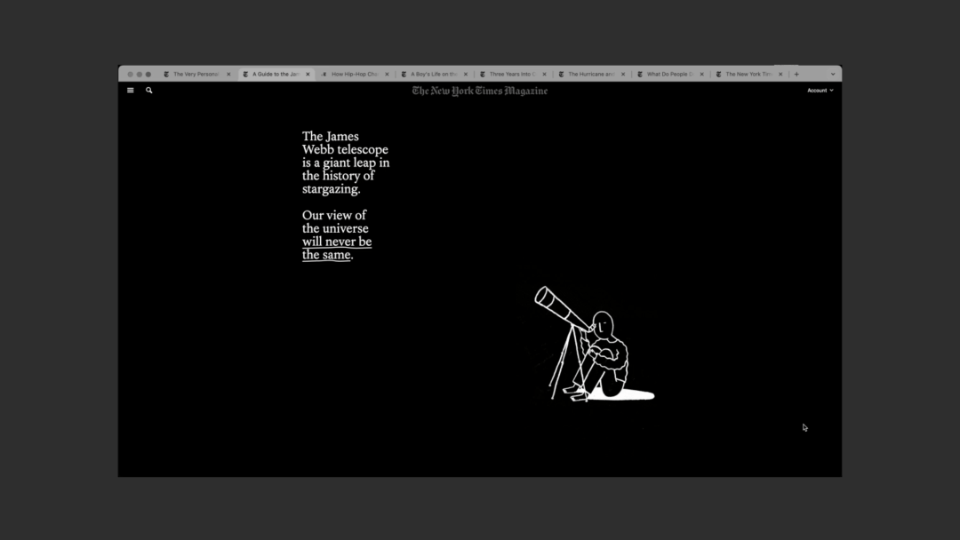 这本书由新加坡生活和商业教练丹尼尔·林(Daniel Lim)撰写,充满了诙谐而扎实的建议,告诉我们如何摆脱外部因素和看法的束缚,过上更快乐、更有目标的生活。他们将 Word 文档中的 99 页文本转换为一本交互式书籍,其中每一章都有不同的旋律,散布着不平衡的布局和多个交互式弹出元素。