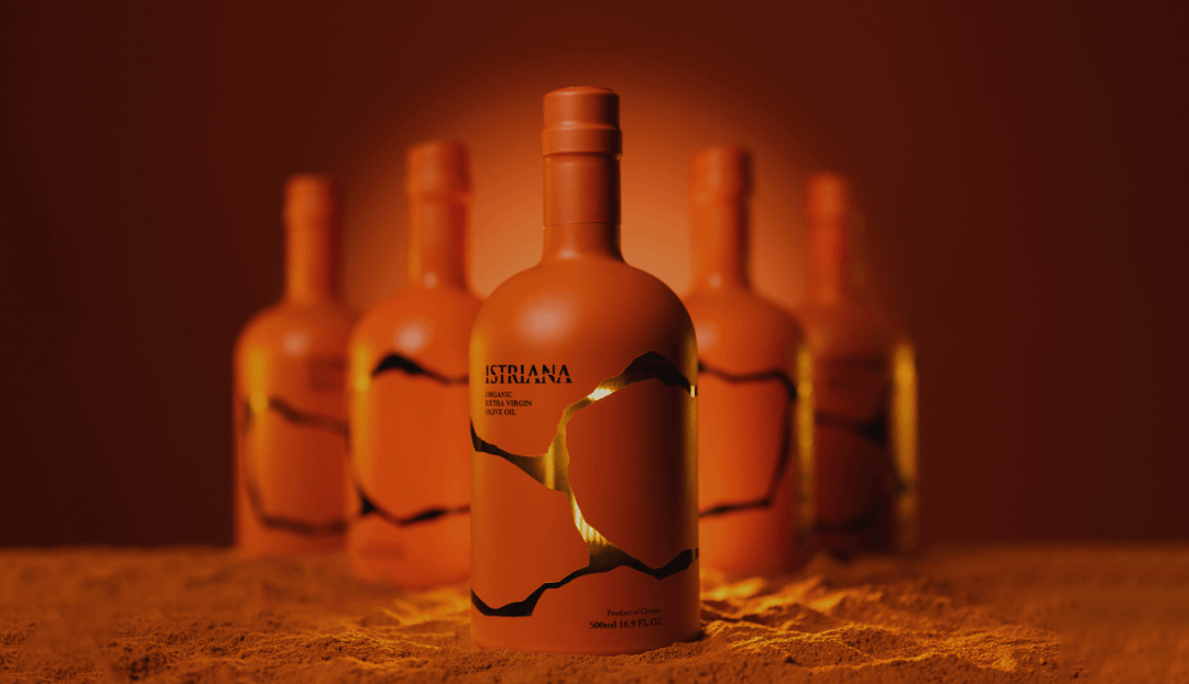 Istria是克罗地亚的伊斯特拉纳 (Istriana) 橄榄油种植地,双耳细颈瓶的形状与当时伊斯特拉半岛使用的双耳细颈瓶的形状相同,重新组装这些粘土碎片,就像伊斯特拉半岛橄榄种植传统的复兴一样。瓶子上的字体结合衬线和非衬线字体,以反映罗马的过去和现代。伊斯特拉纳橄榄油生长的土壤是红色的,显然,双耳陶罐的赤土色与红土的颜色相匹配。